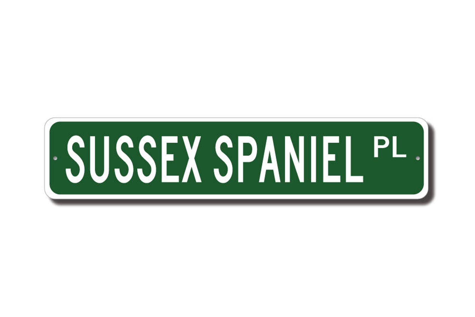 Sussex Spaniel lovers check out this awesome street sign! This will make the perfect piece for any Sussex Spaniel lover or Sussex Spaniel cave. Made of premium aluminum it will stand the test of time. This sign will look great in any room, garage, barn or office! Get this sign for your favorite friend that loves a Sussex Spaniel !