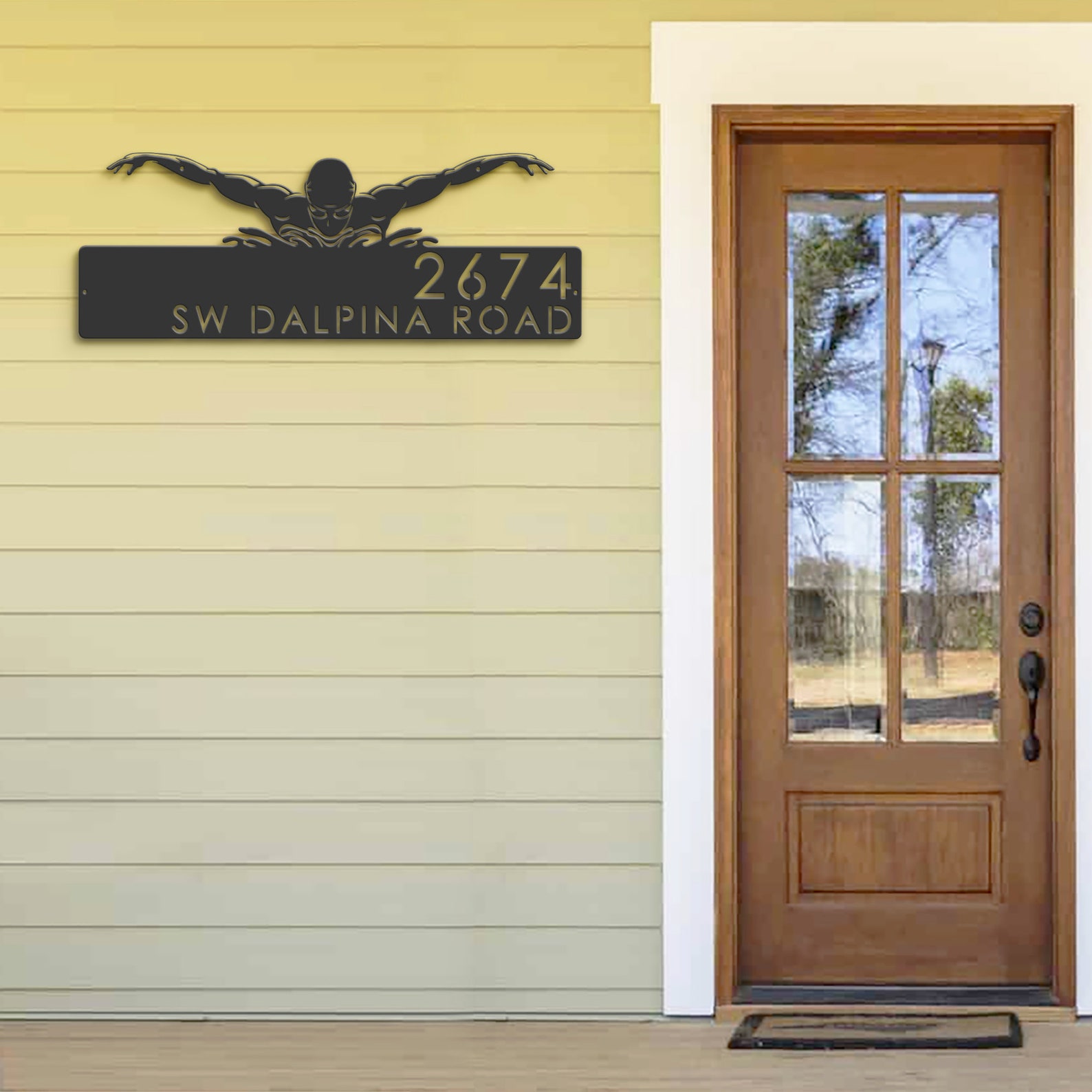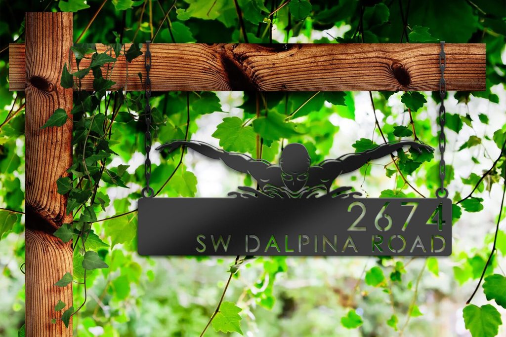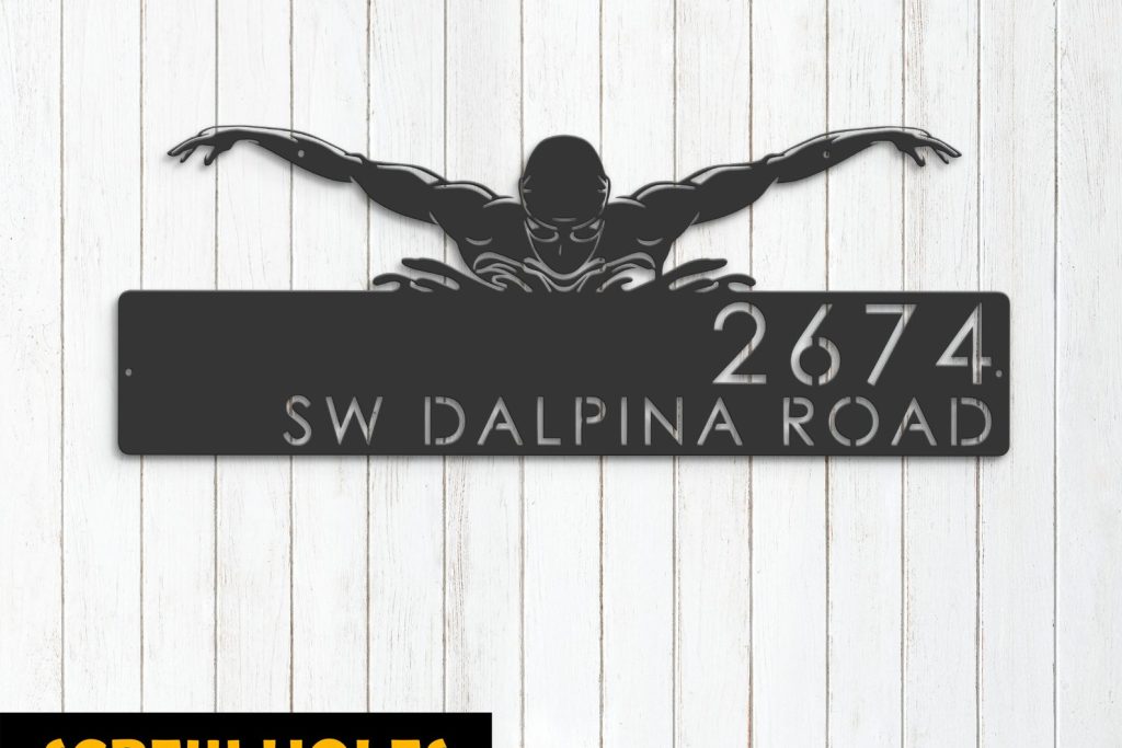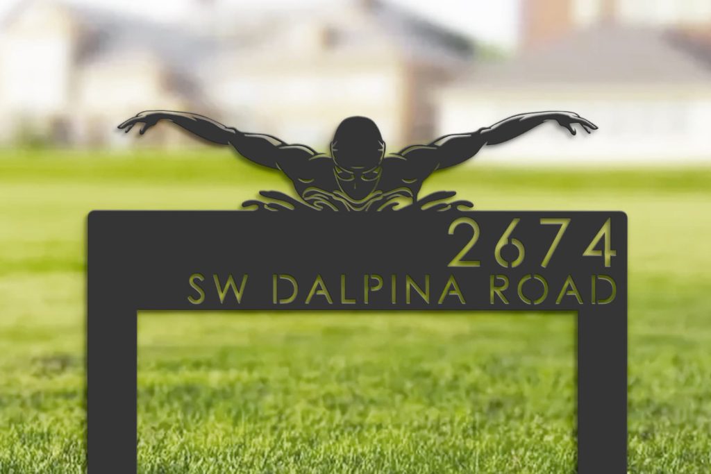 Be the first to review “Swimmer Address Sign – Custom Metal Summer Sport Plaque”