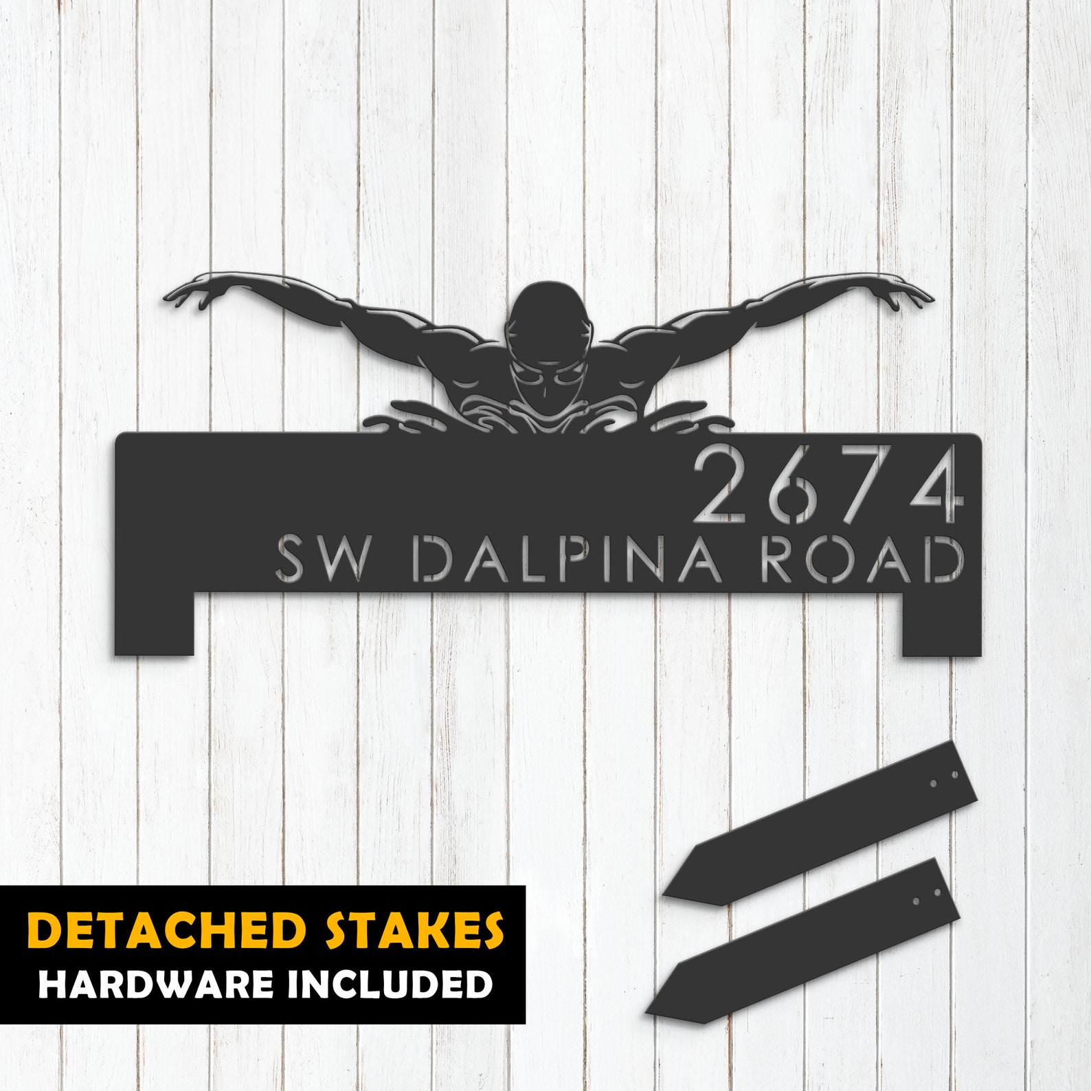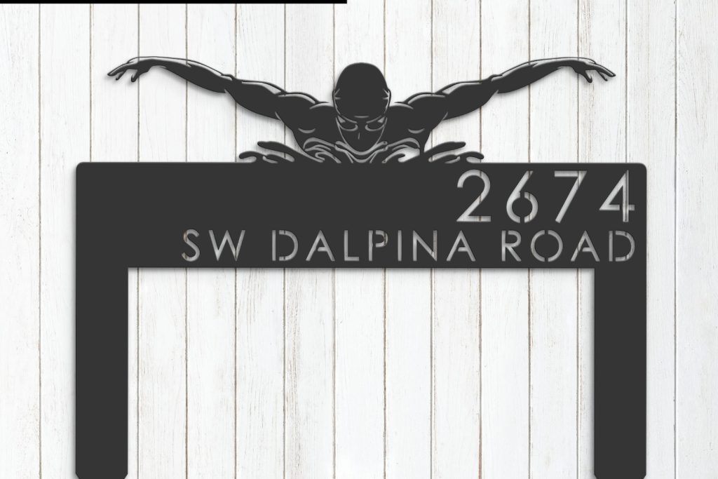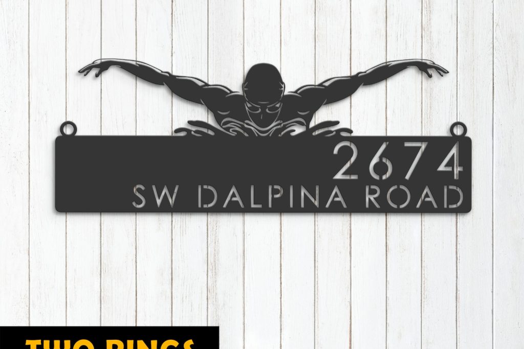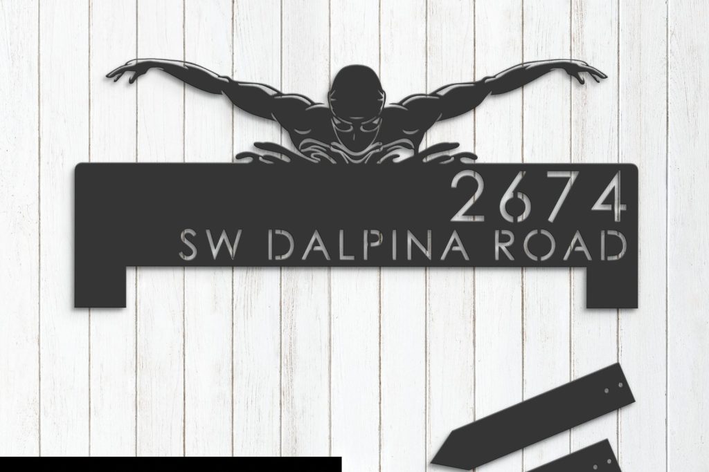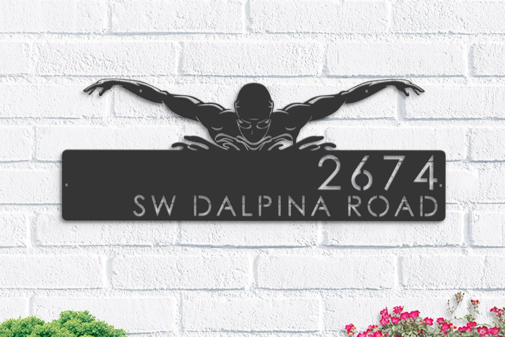 Be the first to review “Swimmer Address Sign – Custom Metal Summer Sport Plaque”