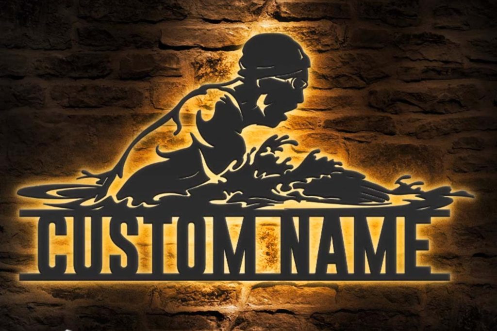 Be the first to review “Swimming Metal Art with LED, Personalized Sign”