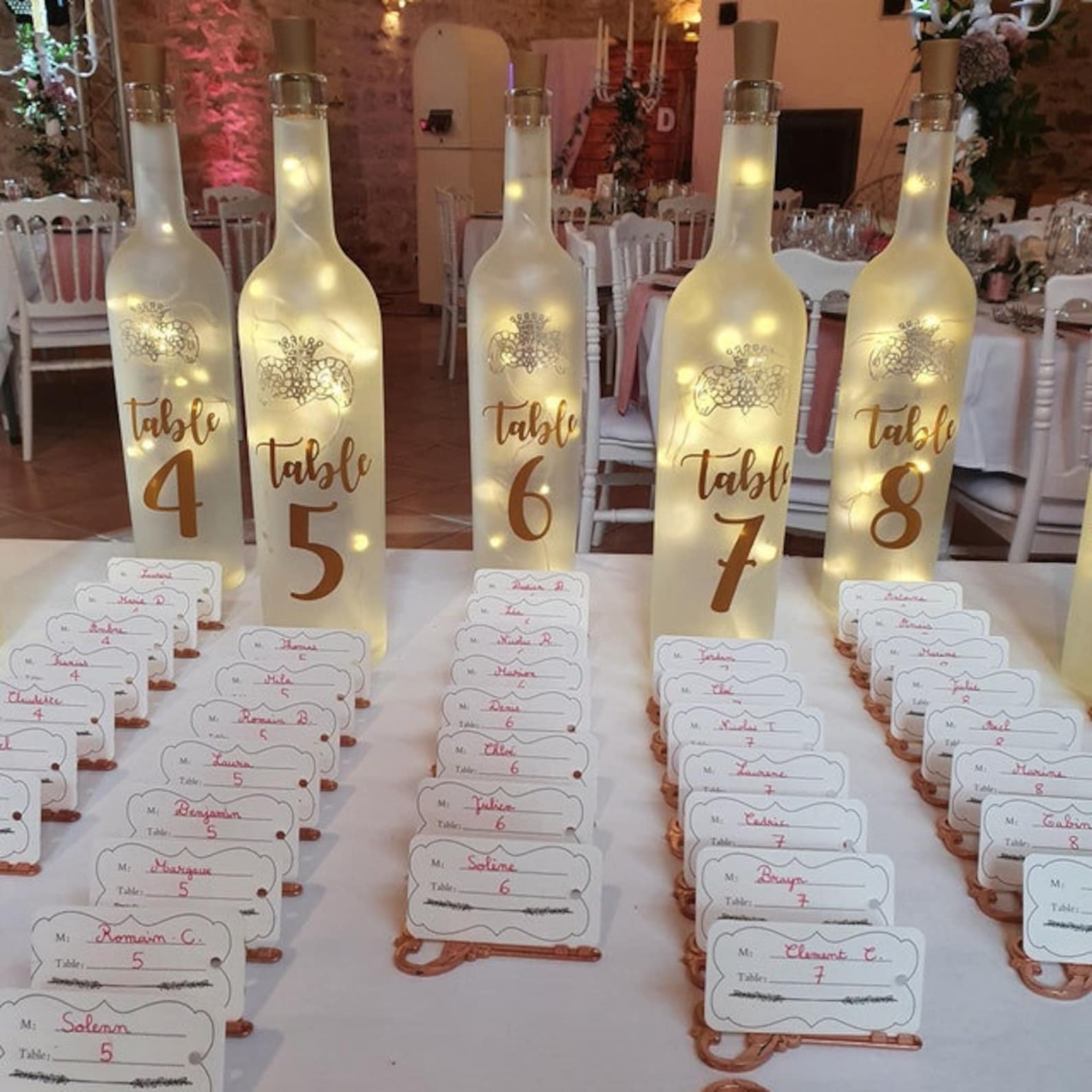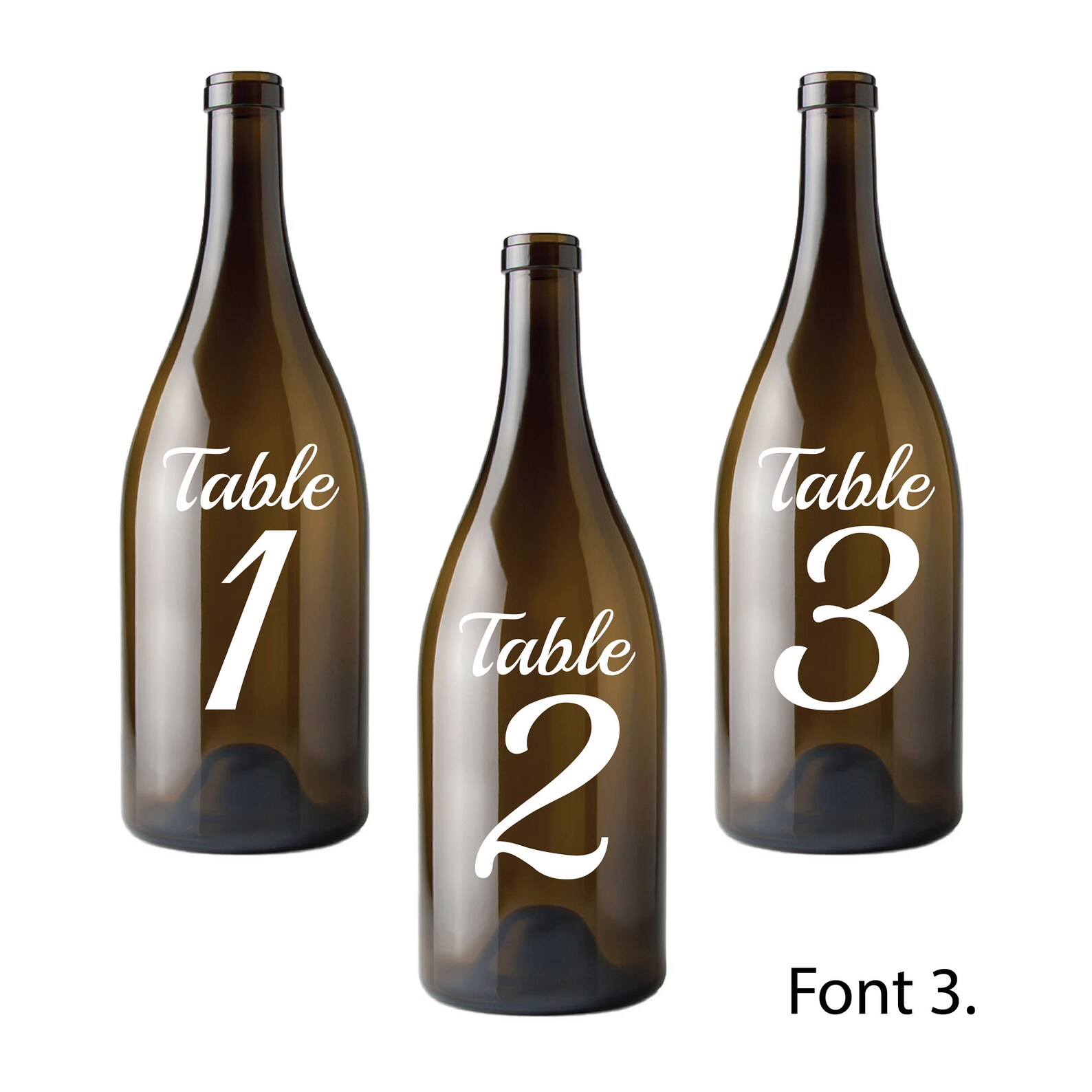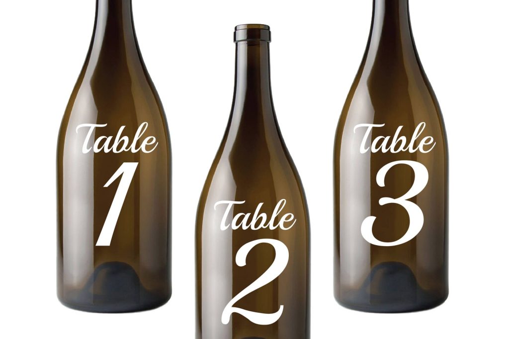 Table number decals are perfect for a DIY wedding. They can be placed on any flat, smooth surface. Just peel and stick.