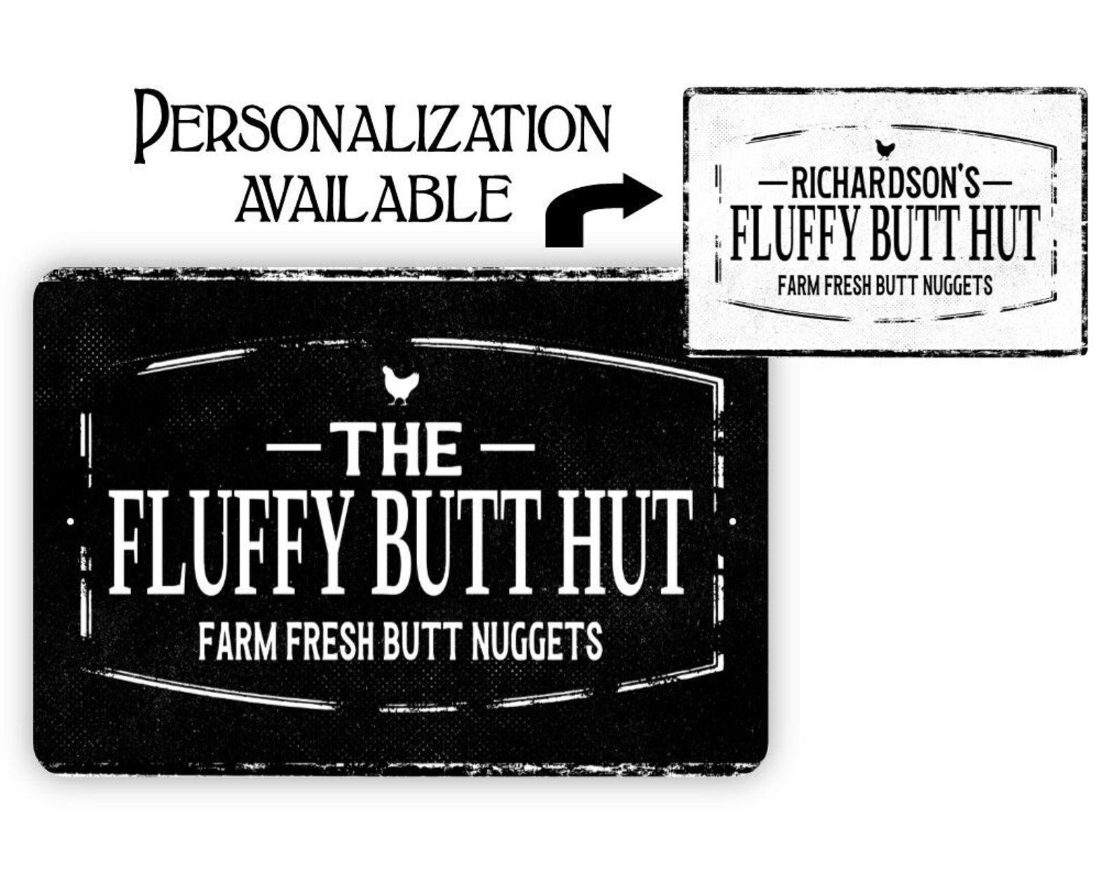 Be the first to review “The Hen Den Personalized Metal Chicken Sign”