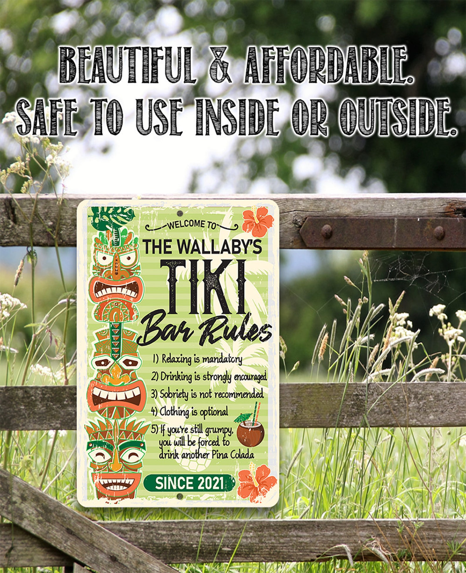 Be the first to review “Tin Personalized Tiki Bar Rules Sign – Indoor/Outdoor Decor”