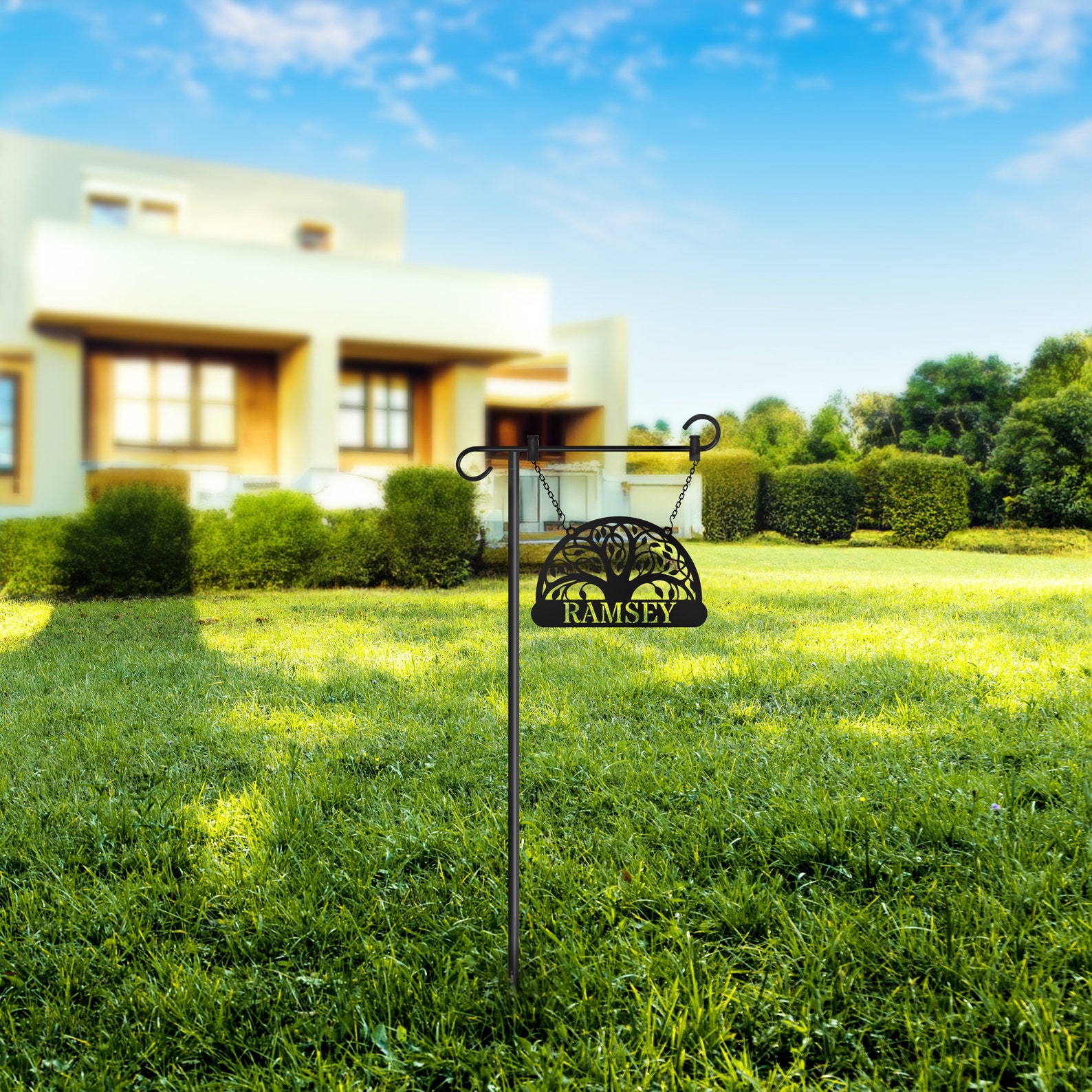 Quality Materials – This personalized metal Tree of Life garden flag with stand is constructed from strong, solid 16G carbon steel and finished with a weatherproof powder coat finish. Optional beefy adjustable 34-50" Pole.