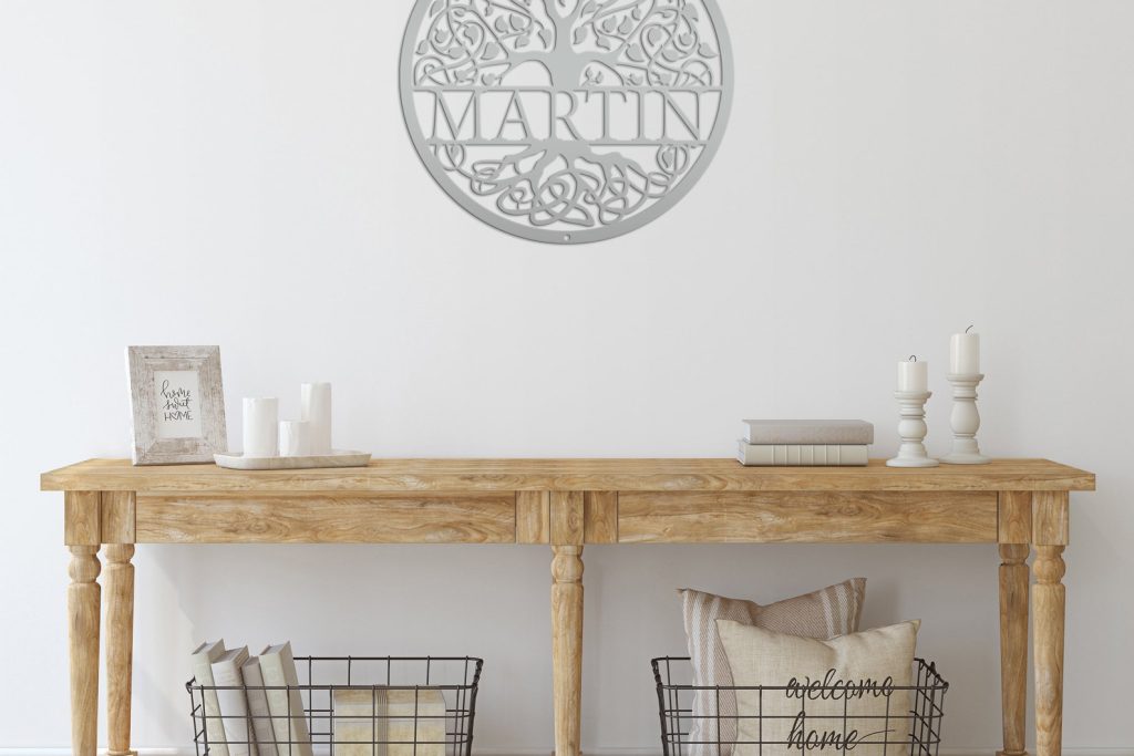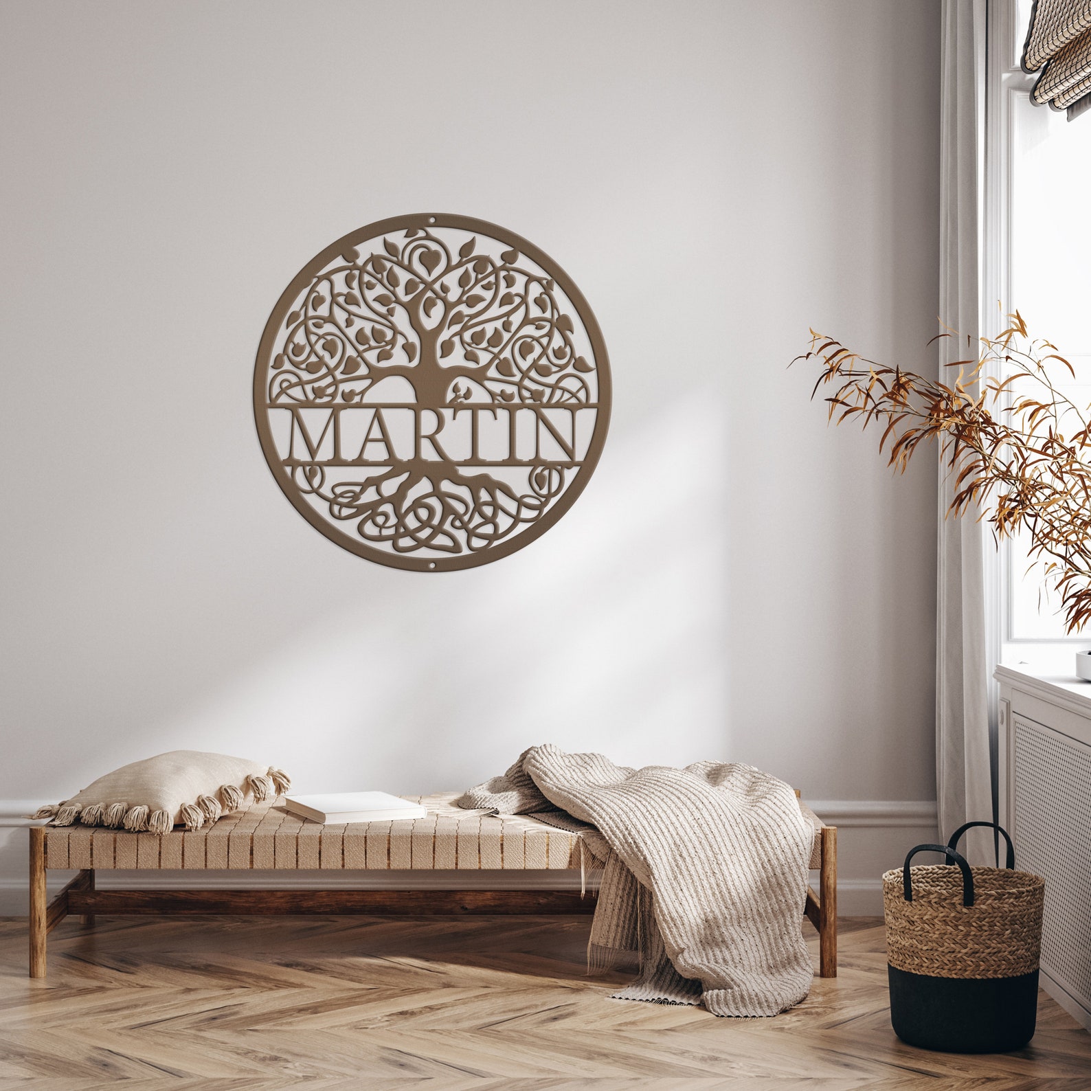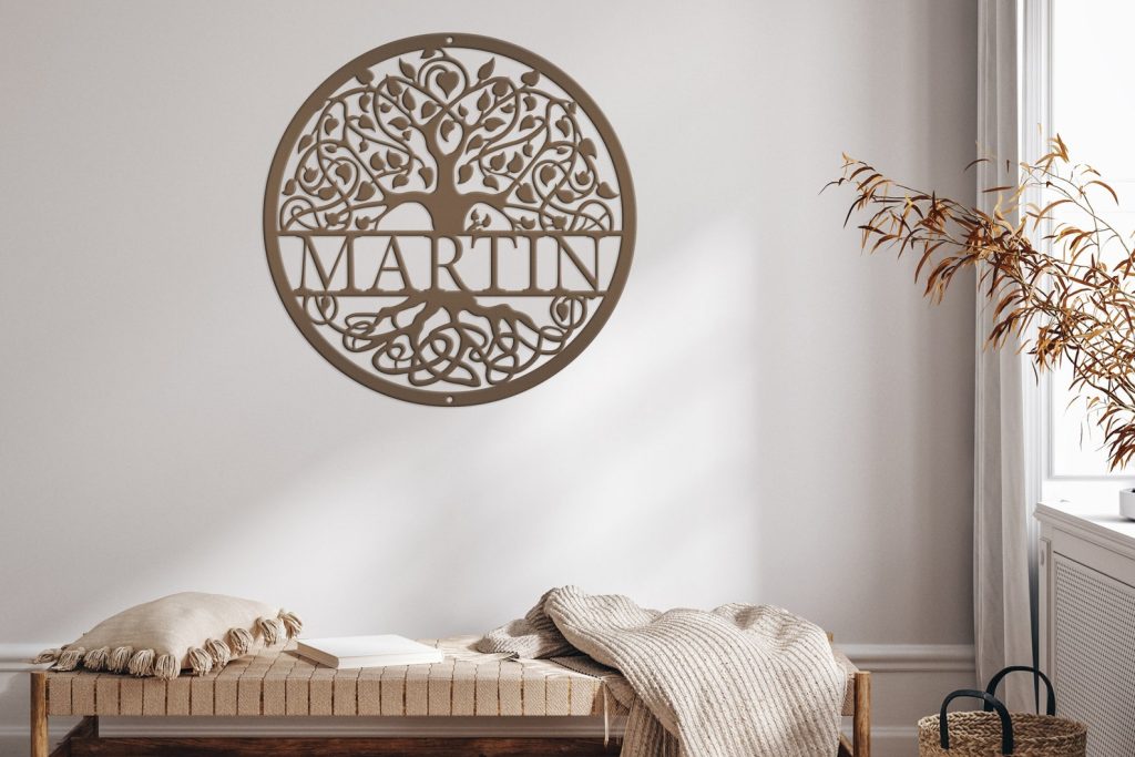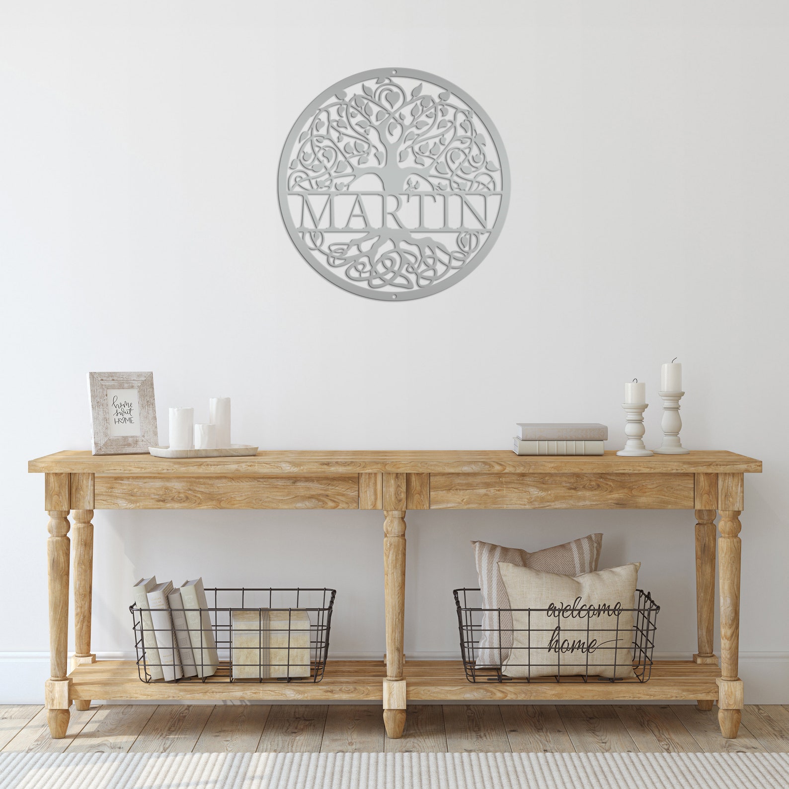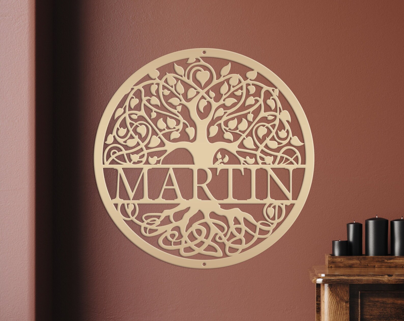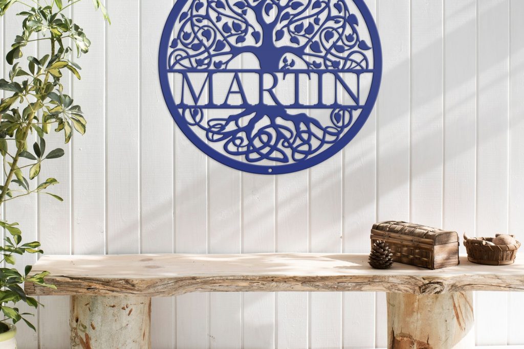 Enhance your home decor with our exquisite Family Tree Monogram Sign. This customized metal last name signage adds a personal touch to any wall, making it an ideal housewarming gift or wedding registry item. Create a warm and inviting atmosphere with this personalized wall decoration that celebrates your family9;s unique identity.