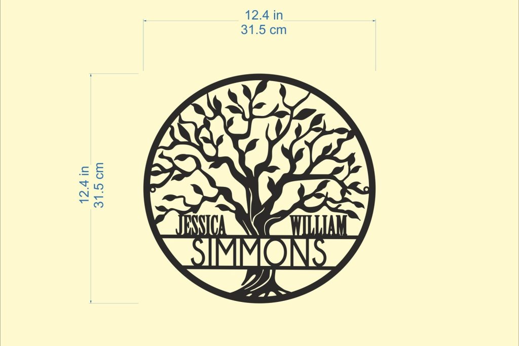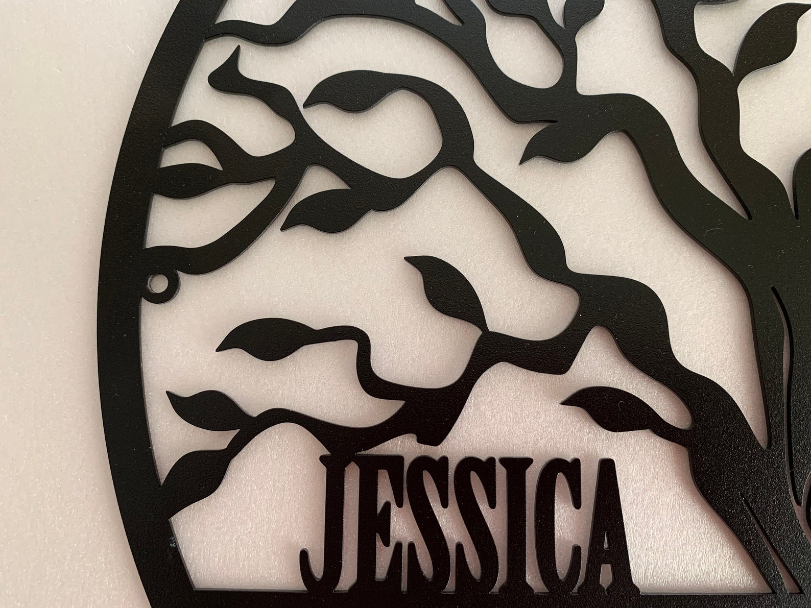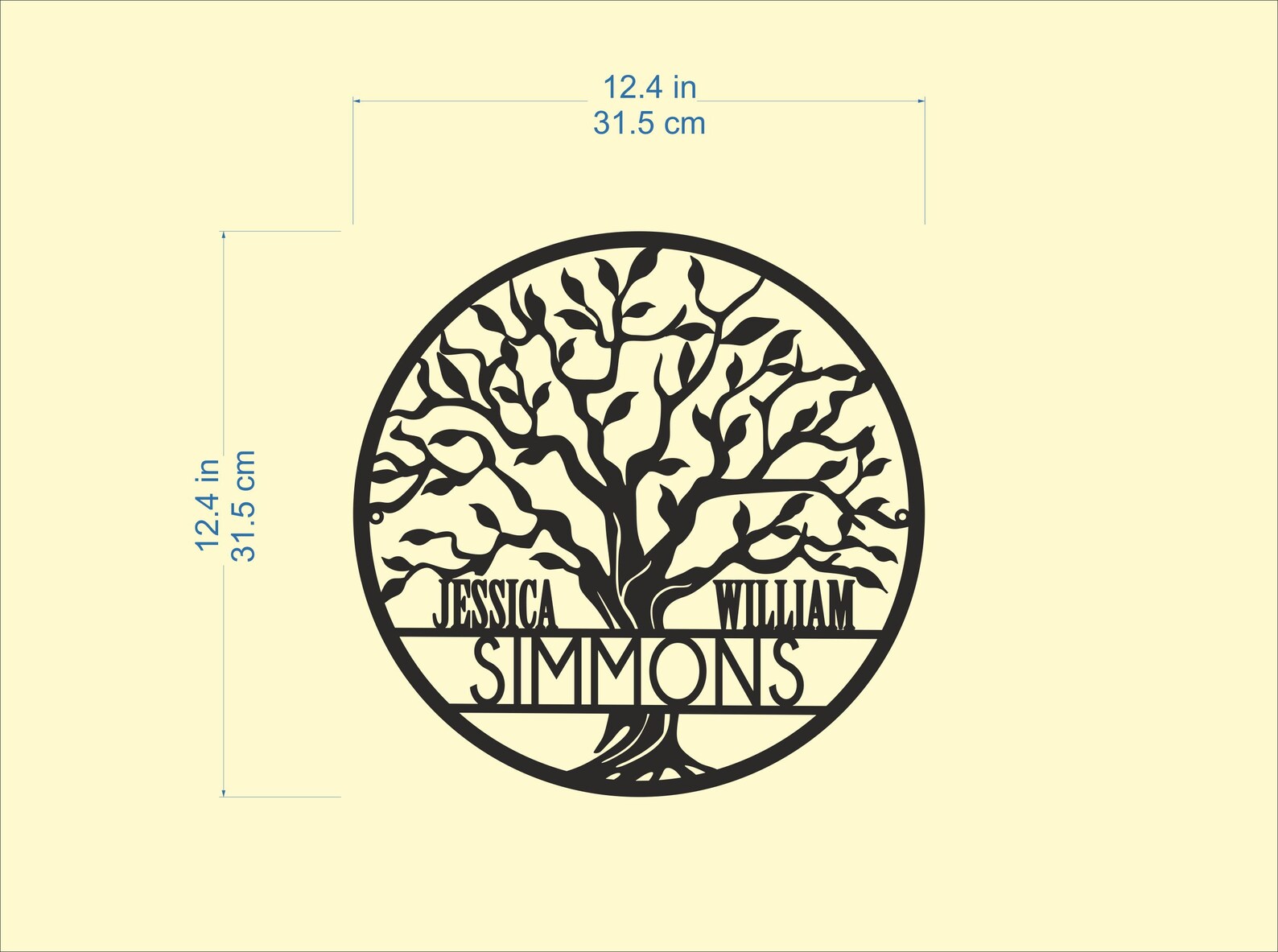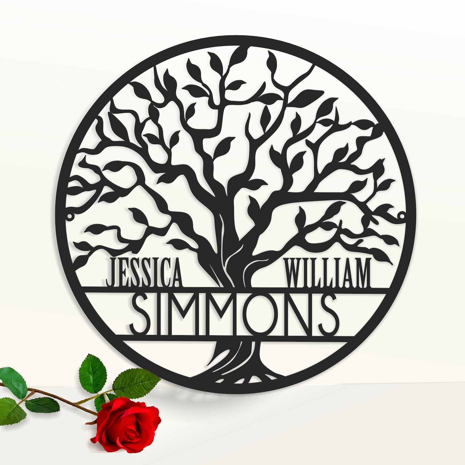 Custom last name metal sign with a couple of first names. Tree of Life sign.