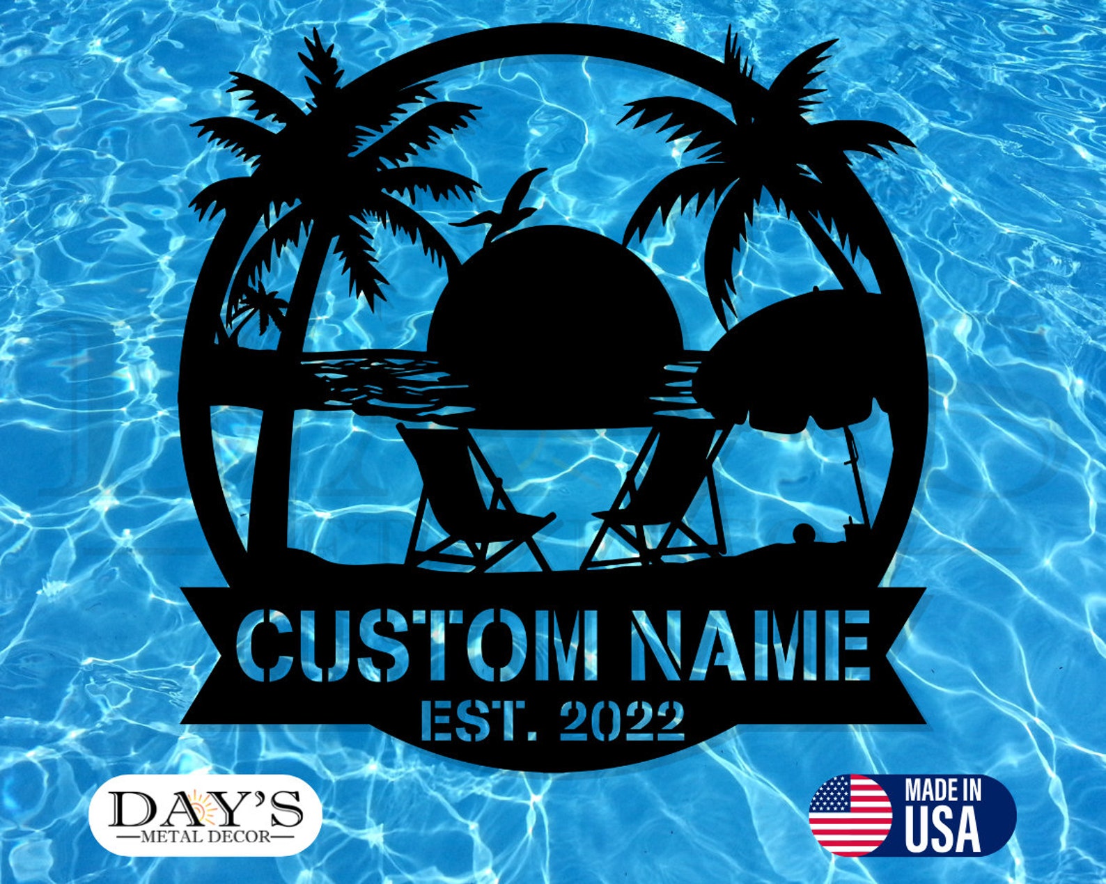 Be the first to review “Tropical Themed Personalized Metal Sign – Beach House Decor, Backyard Sign”