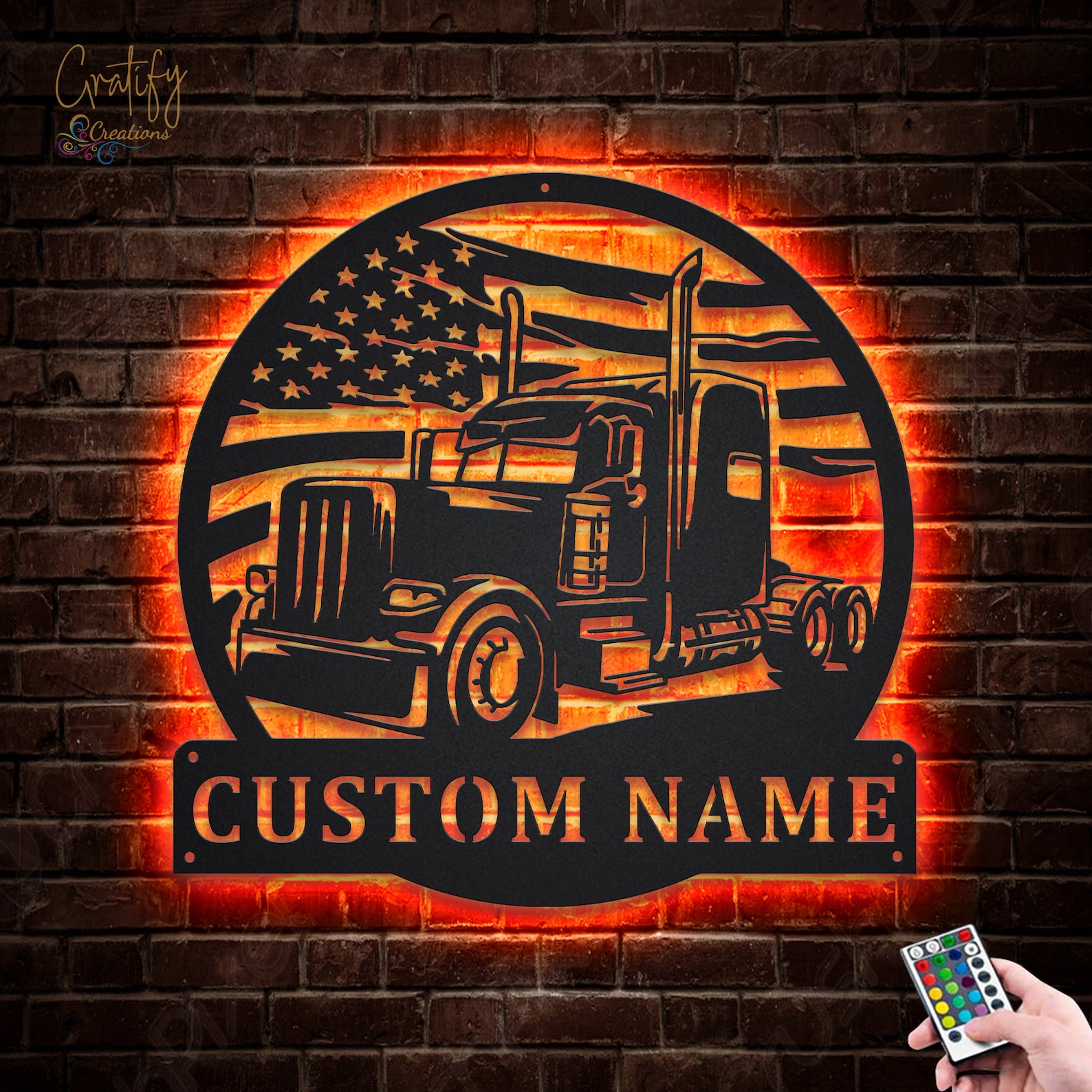 Be the first to review “Trucker’s Pride LED Metal Wall Art – Personalized US Flag Semi Truck Sign”