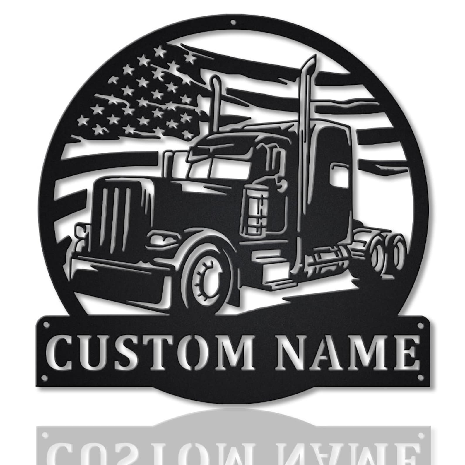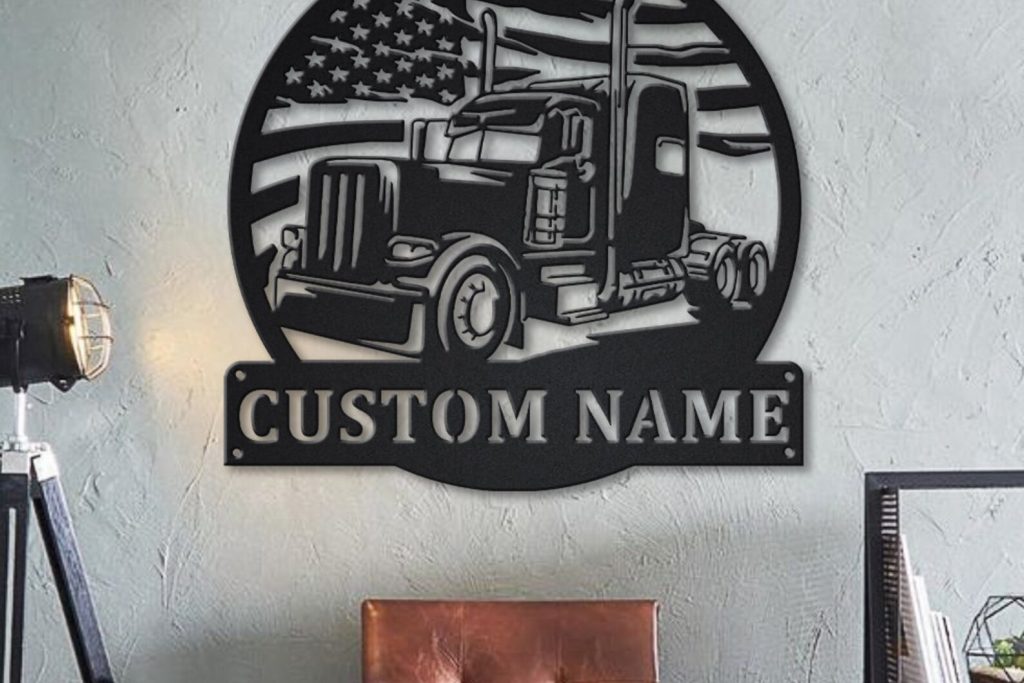 Looking for a unique and personalized gift for your dad, husband, or friend who is a truck driver? Look no further than our Custom US Flag Semi Truck Metal Wall Art! This stunning piece of metal wall art is perfect for any truck driver or trucking enthusiast. It features a beautiful US flag design with a semi-truck in the foreground, and can be customized with your truck drivers name.