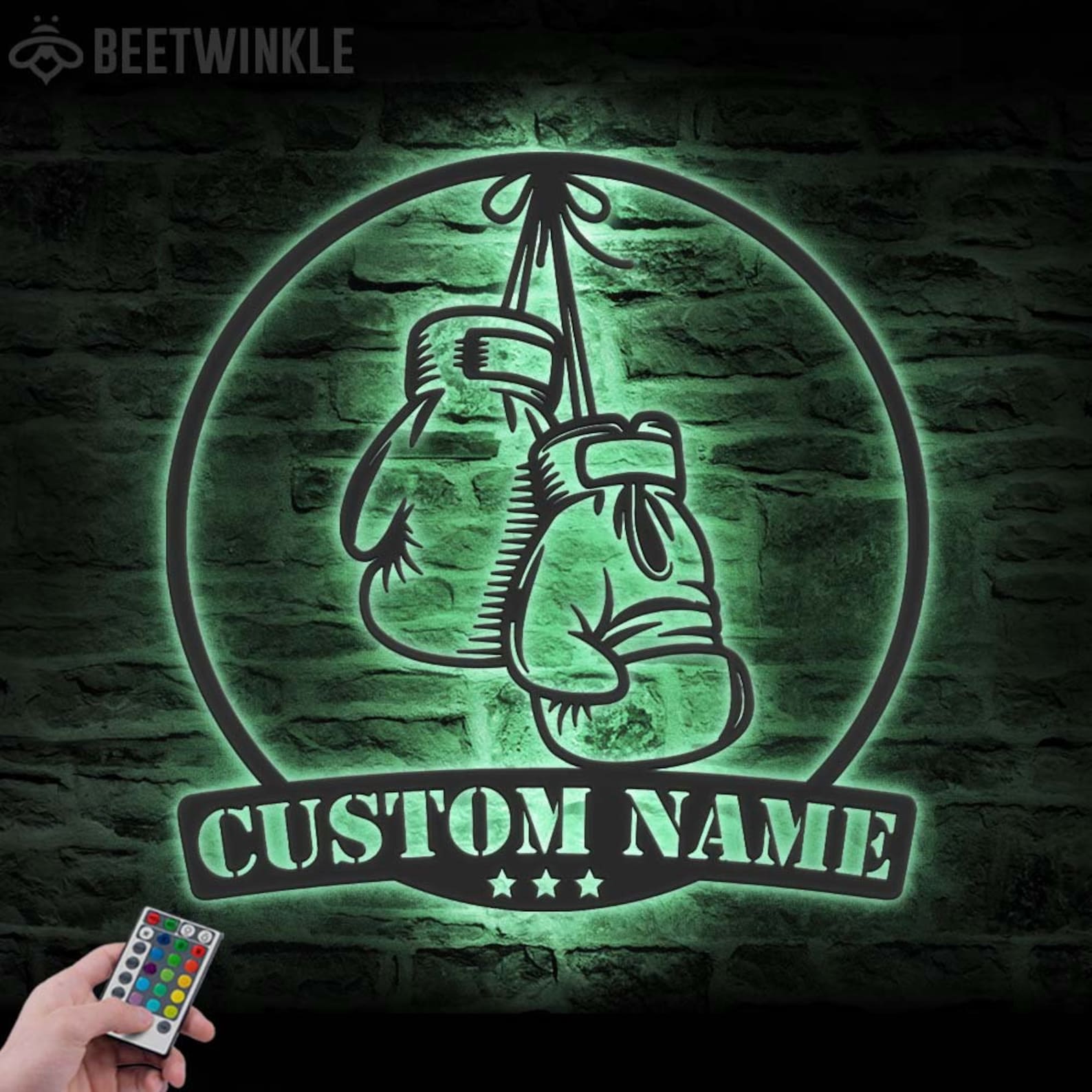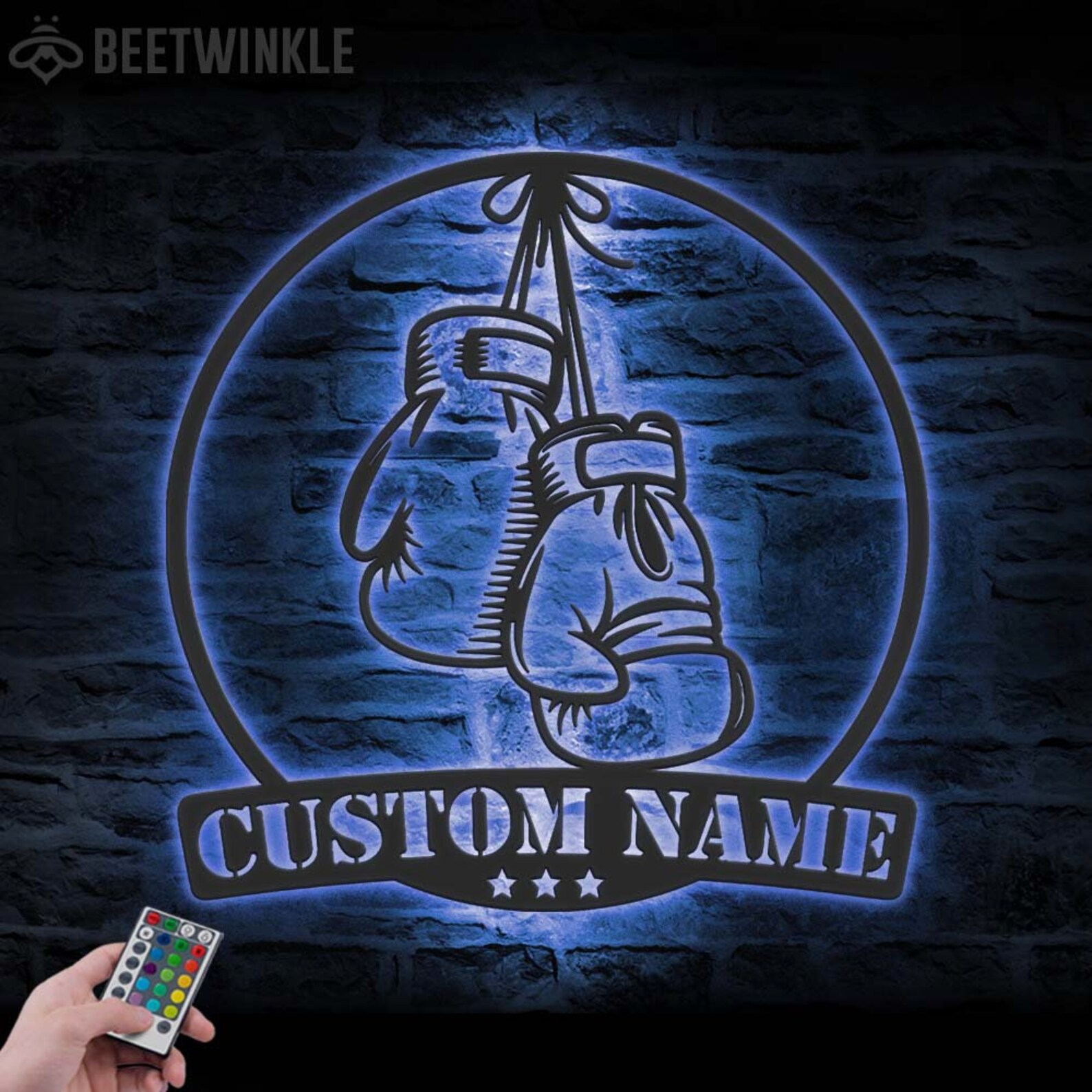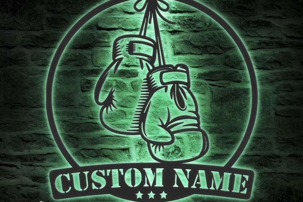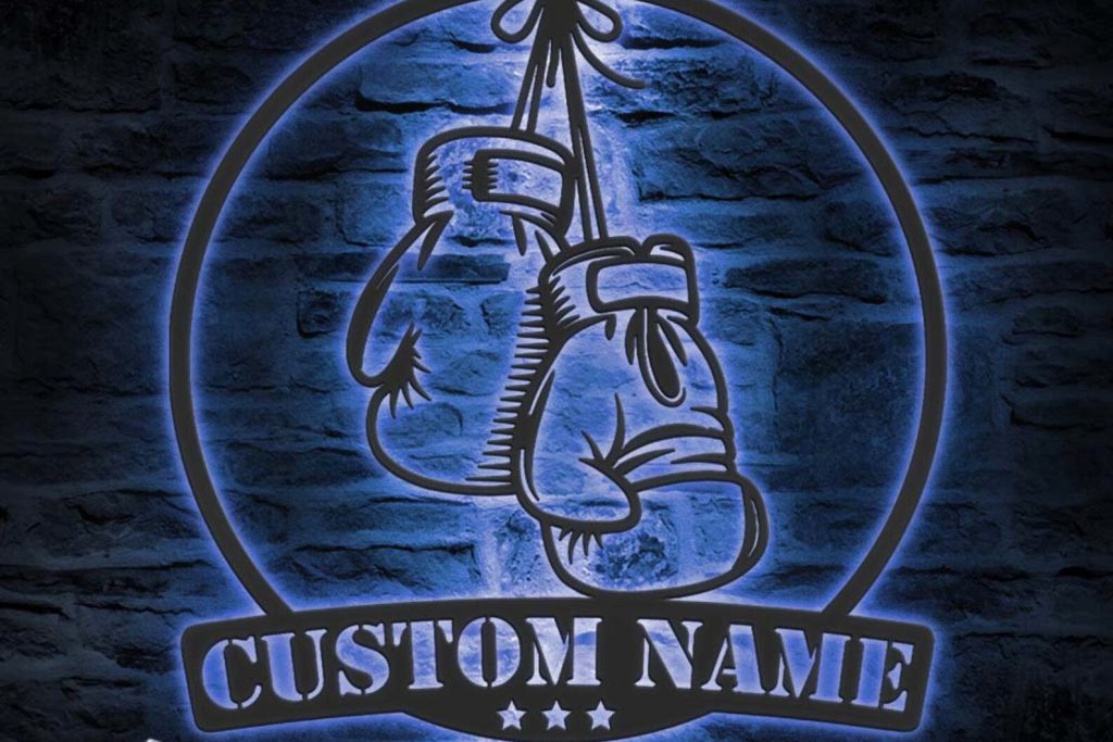 Be the first to review “US Boxing Gloves Art – Personalized Metal LED Boxer Wall Sign”
