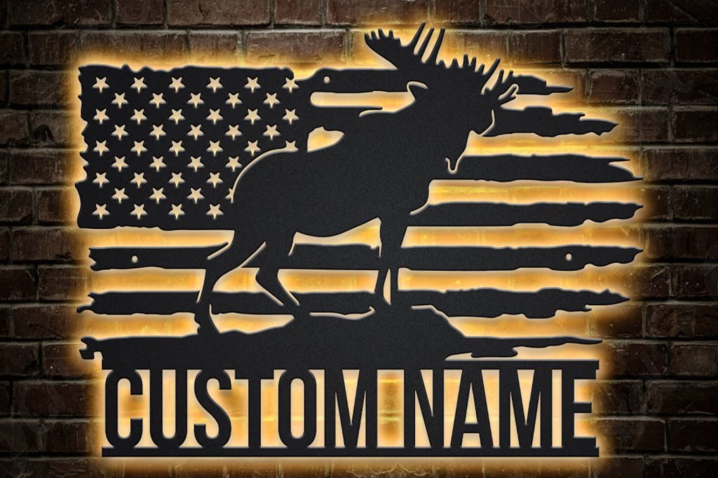 Be the first to review “US Moose Sign, Personalized LED Decor”