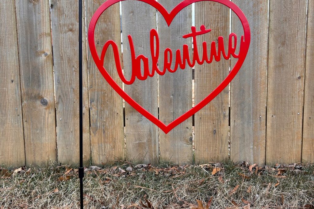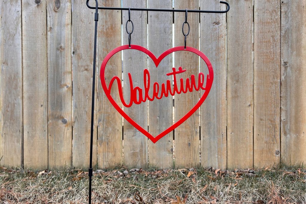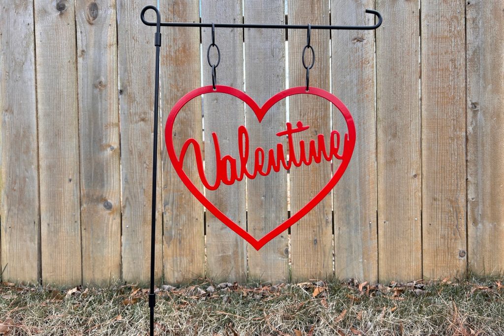 Elevate your outdoor space with our charming Valentine9;s Day Garden Flag! This delightful Heart Garden Flag adds a touch of romance to your outdoor haven. Perfect for expressing love and celebrating special occasions, this Outdoor Yard Decor is a delightful addition to your garden. The Metal Sign is not only visually appealing but also durable, ensuring long-lasting beauty. Transform your space with this Garden Decor that effortlessly combines style and sentiment. Let love bloom in your garden with this Outdoor Metal Sign, making your outdoor area a haven of warmth and affection. Celebrate love in style with our Valentine9;s Day Garden Flag – the perfect accent for any garden or yard!