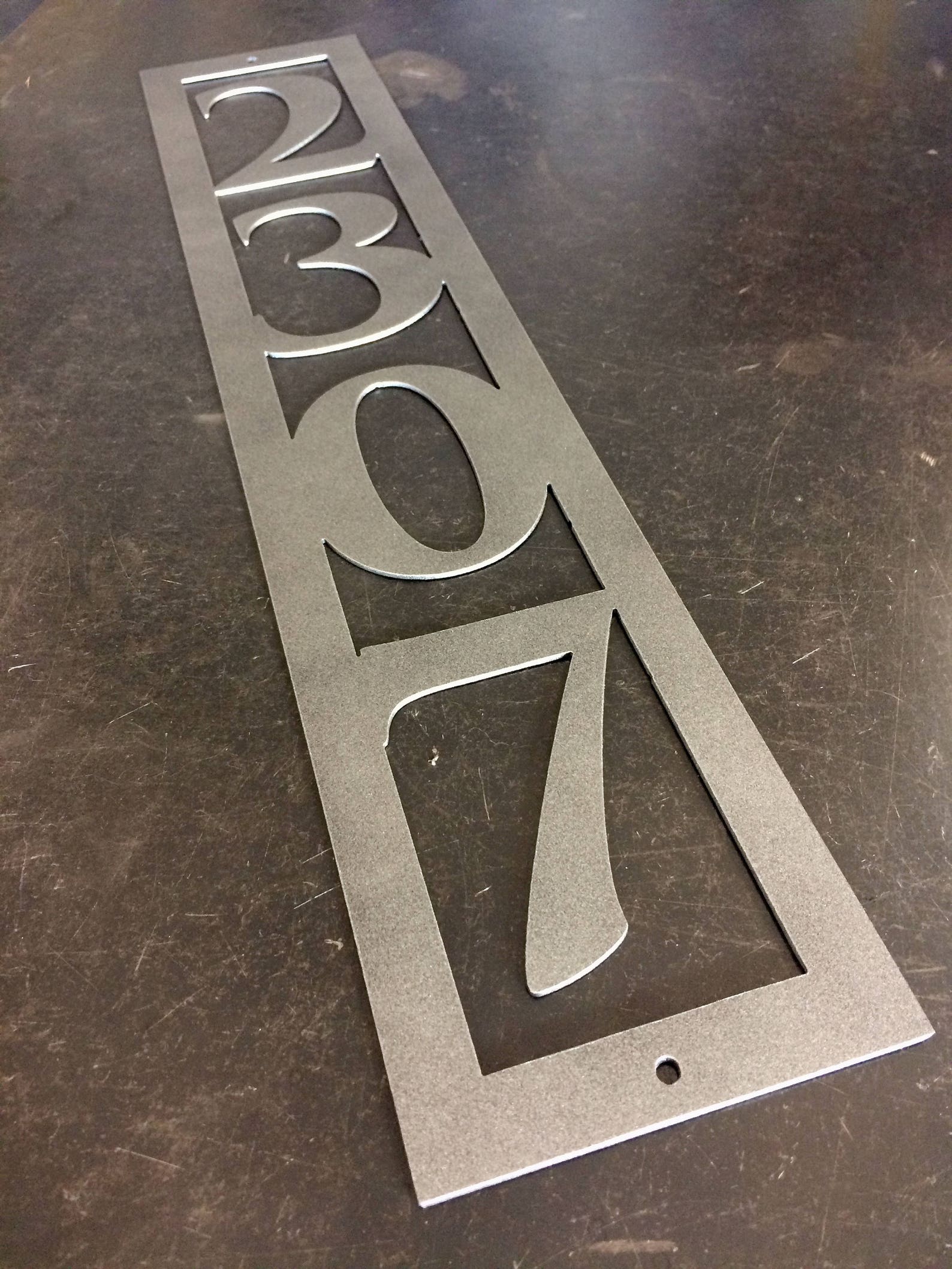 This custom metal address sign will put your house address on the map…literally. It has a modern look, precut holes for easy installation, and made from sturdy, 16 gauge steel. This product is personalized with your own house number and will make a great addition to any front porch or mailbox.