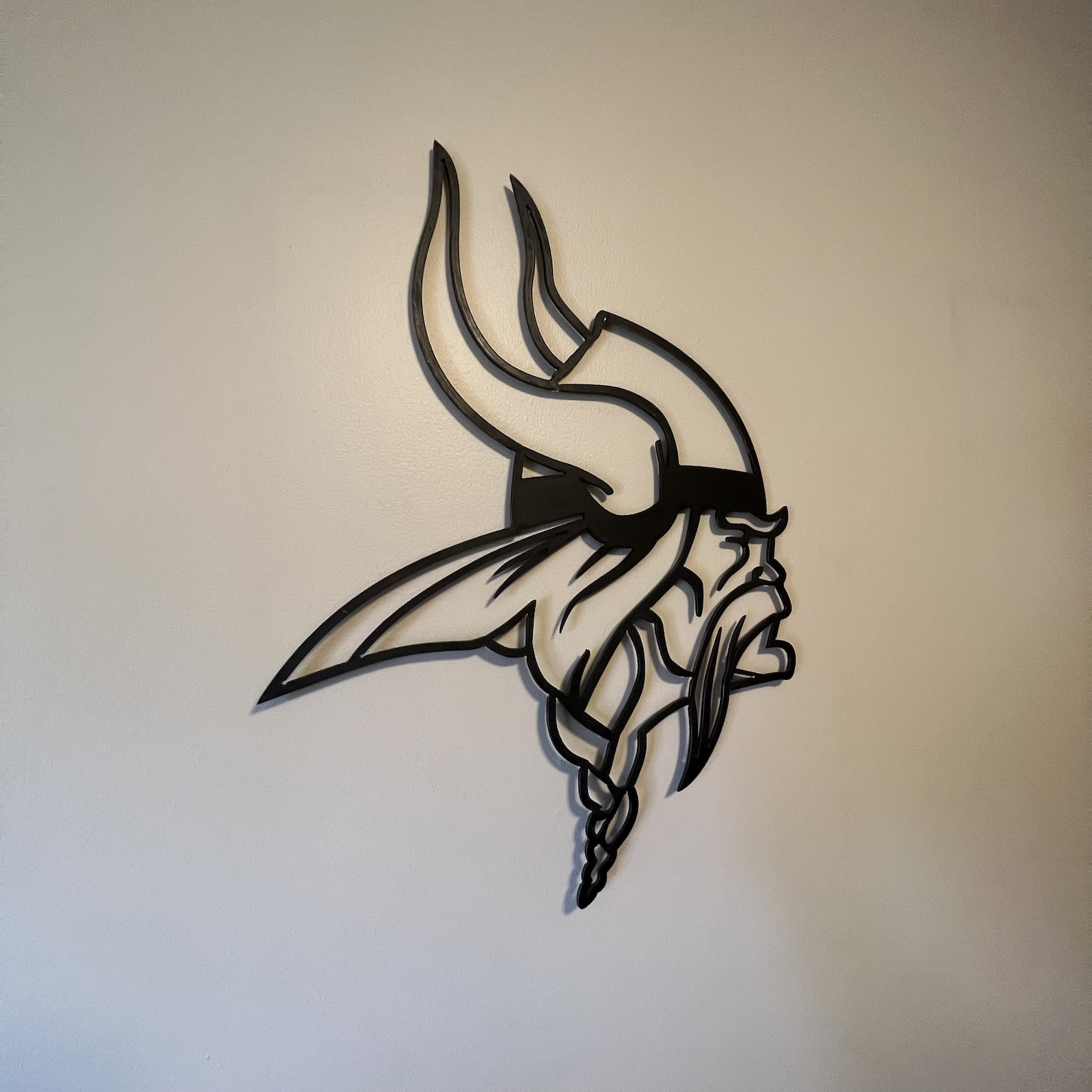 Show your team spirit with our Vikings Emblem Metal Sign, featuring the iconic Minnesota Vikings logo. Handcrafted by Metalcore Welding & Repair, this black metal sign is laser-cut and custom-sized for your ultimate fan cave.