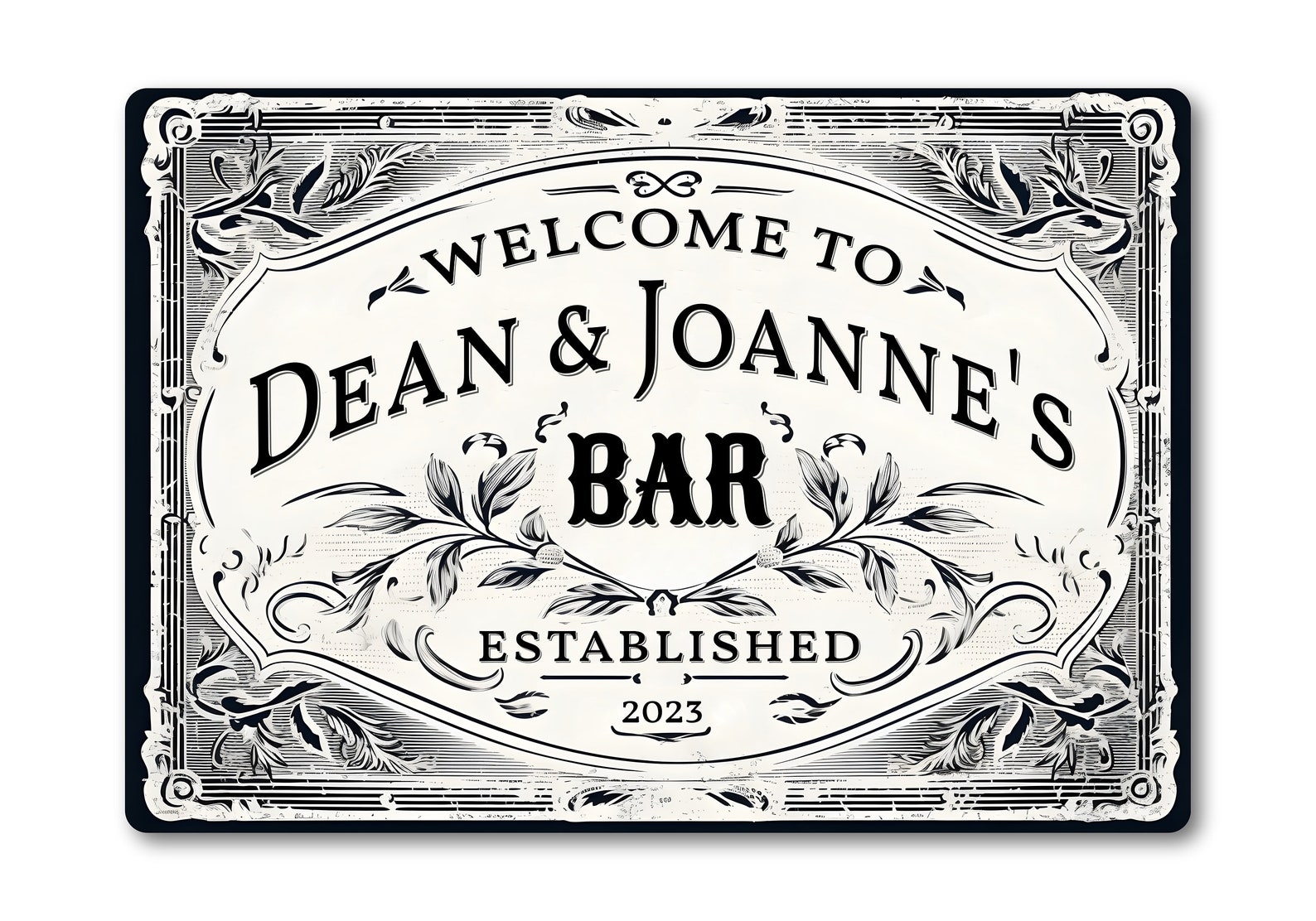 We will only personalise the Name/Names and the established date, so please only give your name/names and Est date