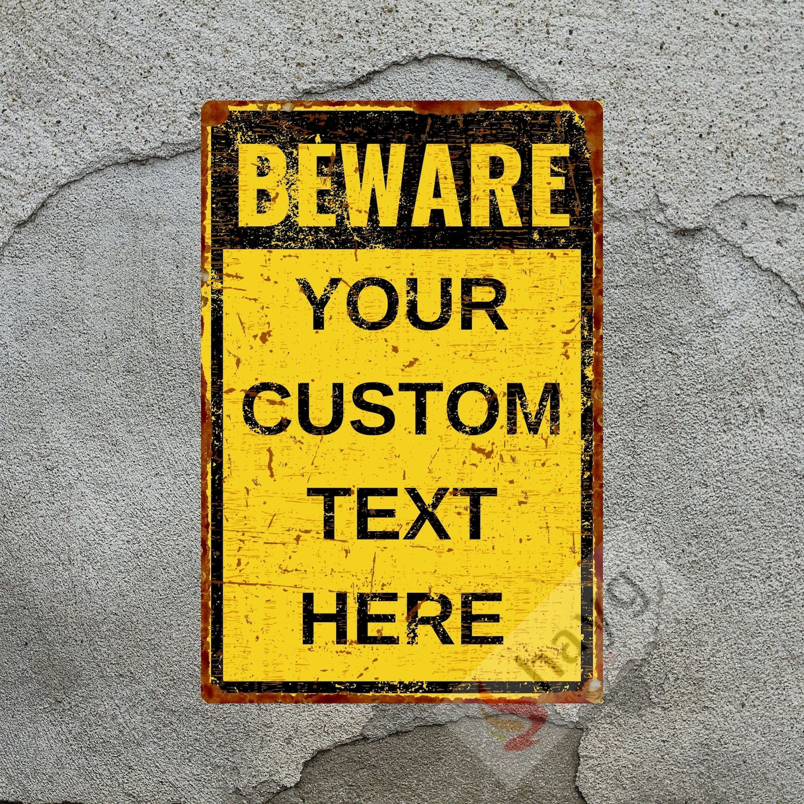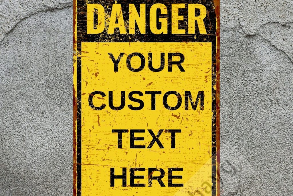 Vintage Country Home Decor, Custom Warning Sign, Metal Yellow Sign