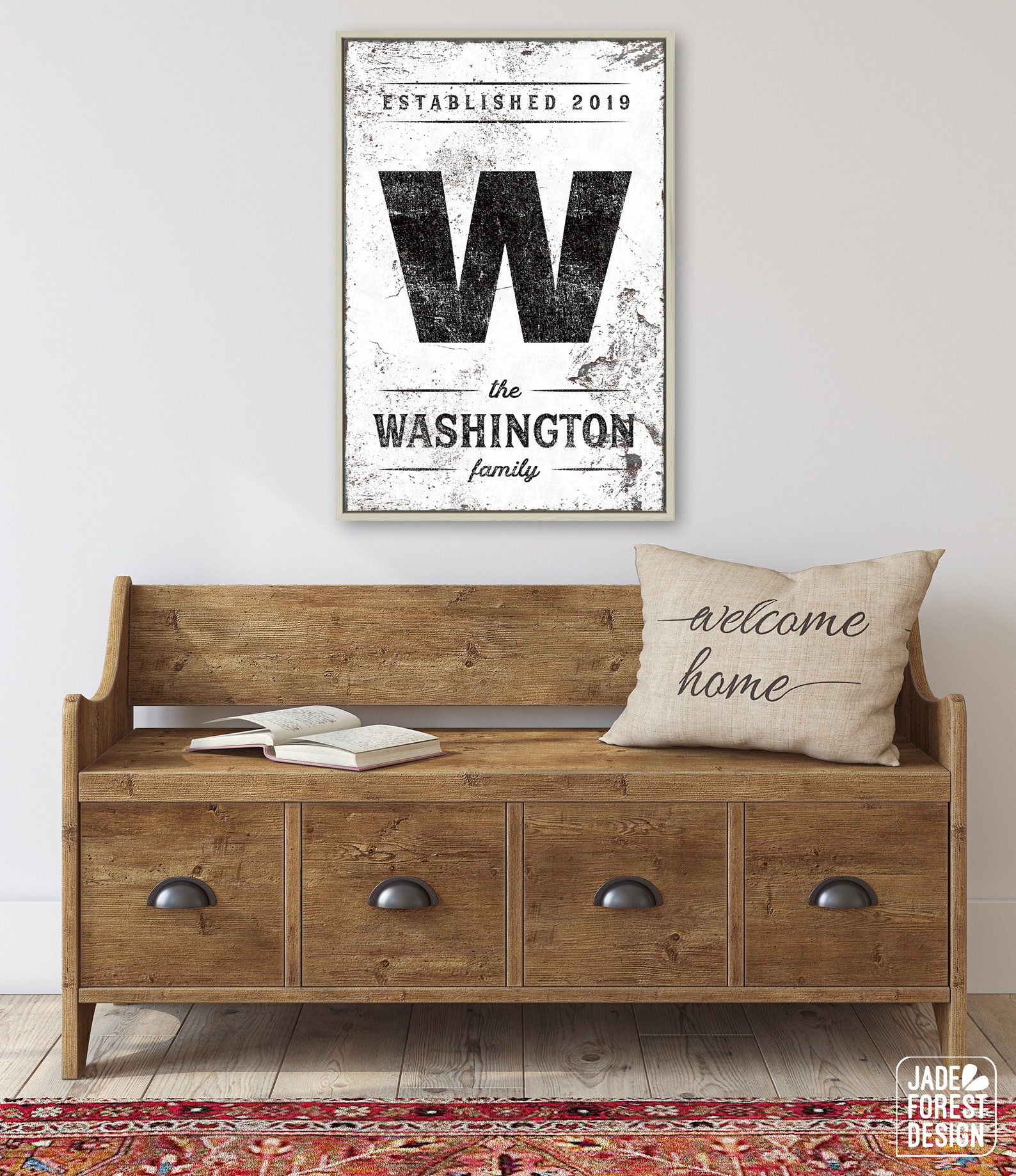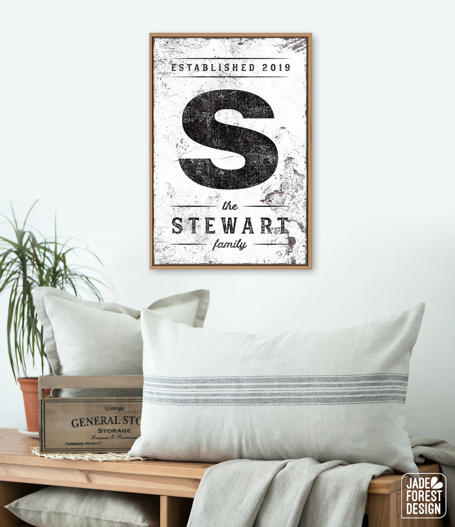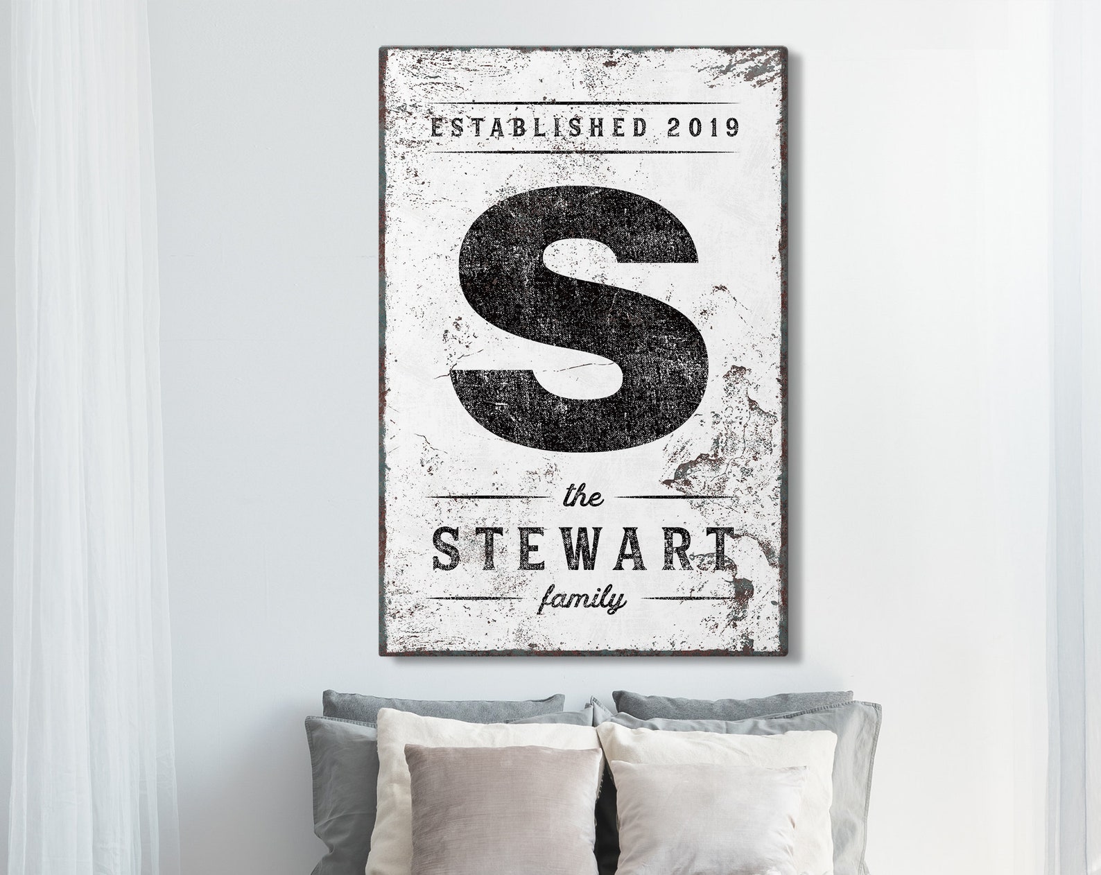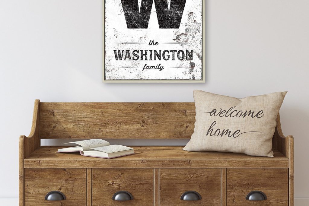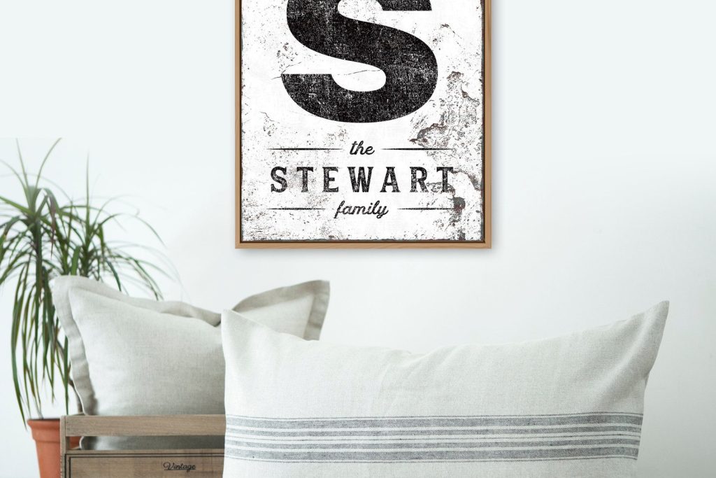 This personalized LAST NAME & INITIAL SIGN is a unique addition to your modern farmhouse decor! The vintage lettering and distressed texture add effortless, rela style to your home.
