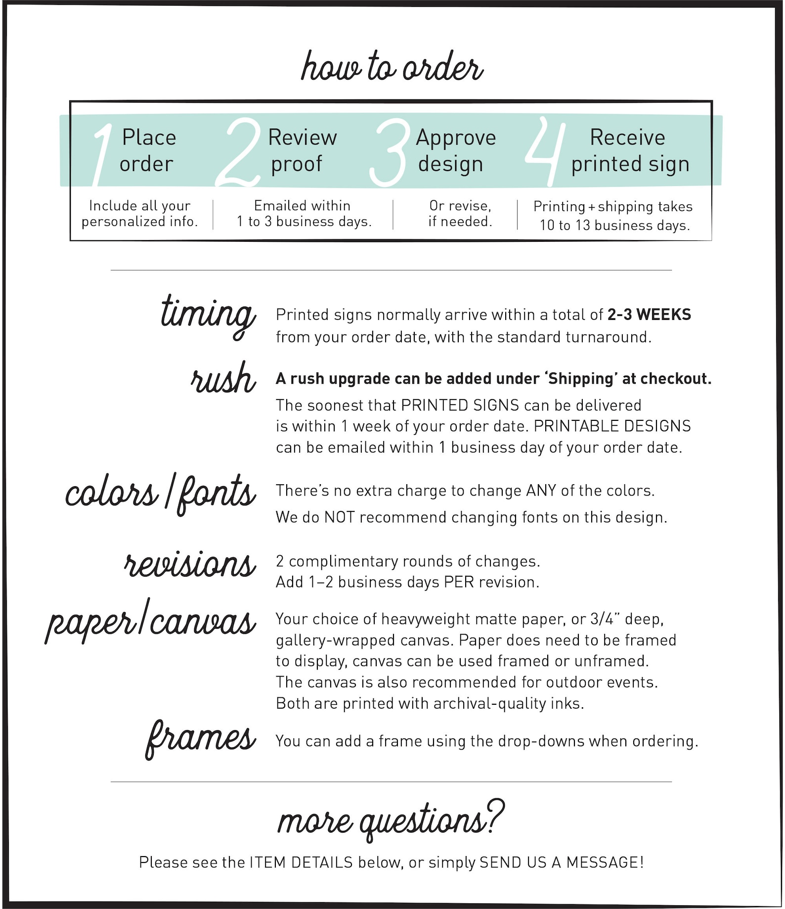 4 Your sign will be printed and shipped once you approve the emailed design. You can expect to receive it in 12 weeks.
