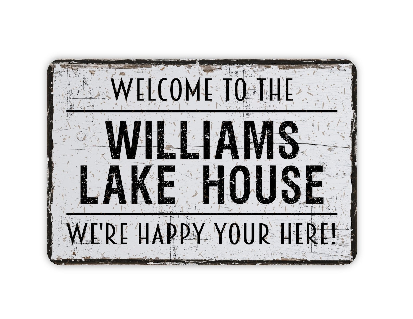 Design: Vintage Style Welcome To The Lake House Personalized Metal Sign With Custom Family Last Name