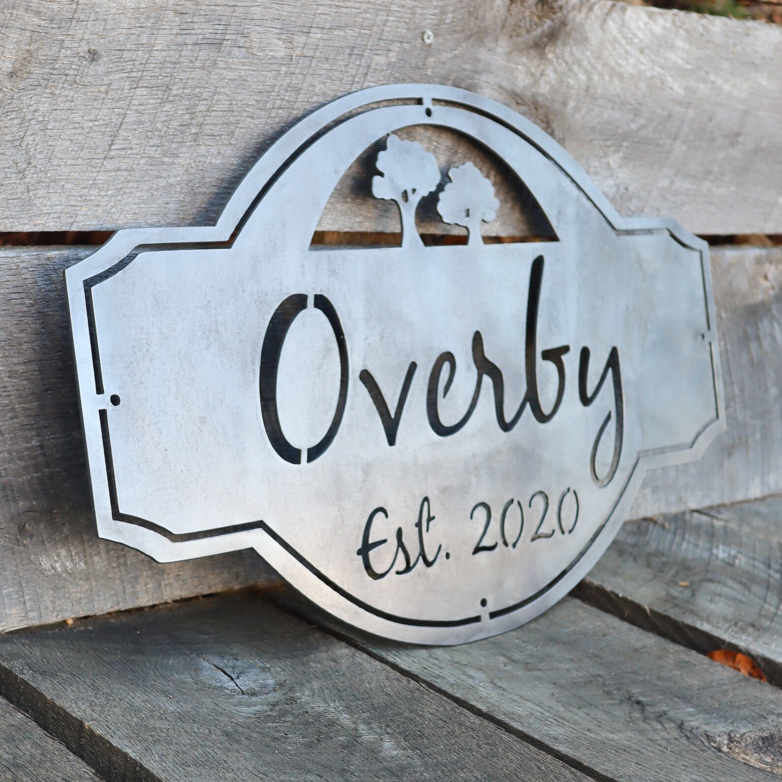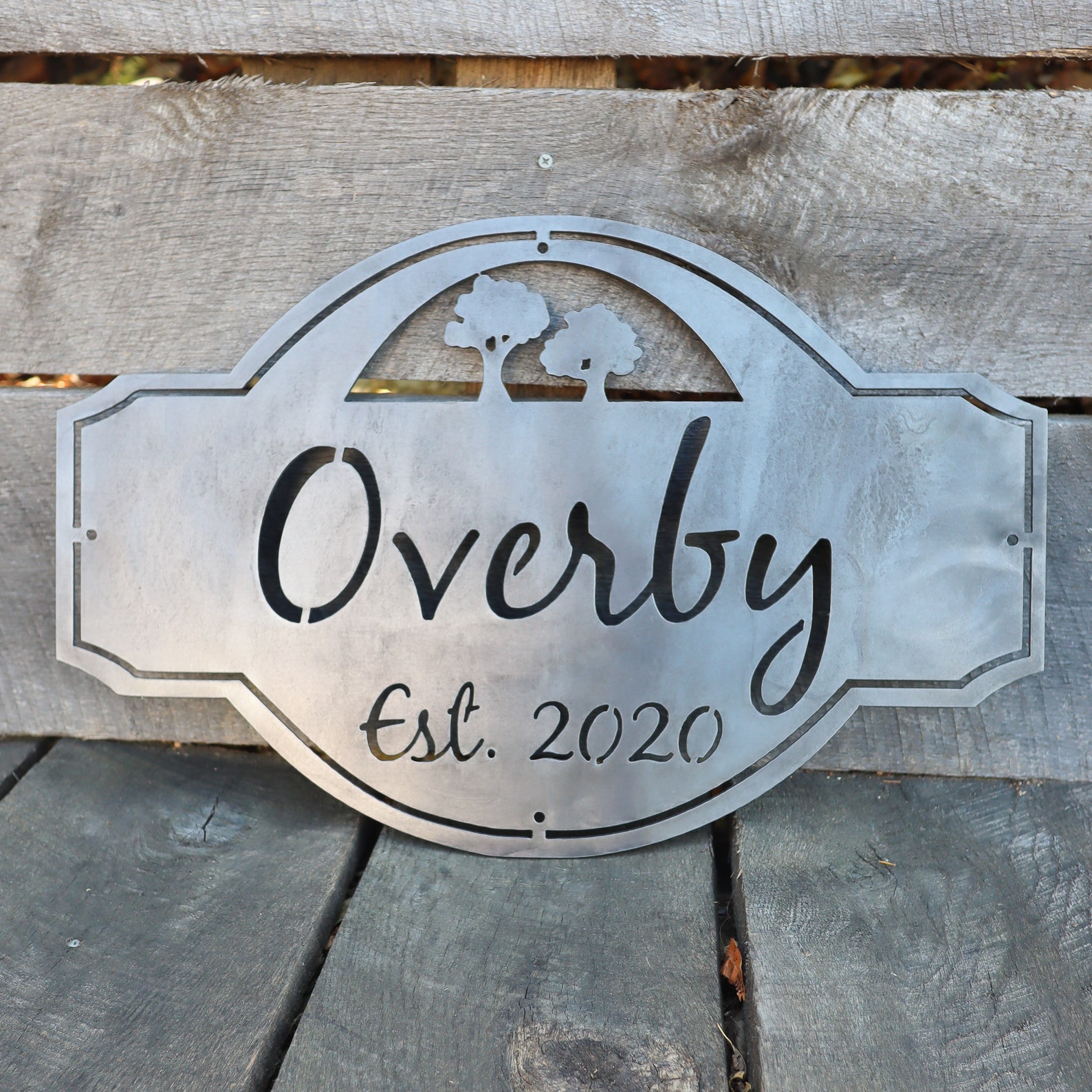 This vintage metal outdoor sign will fit perfectly in your grove, yard, or patio decor. This metal tree decor will help show how important the outdoors is to you while celebrating your family name and its established date.