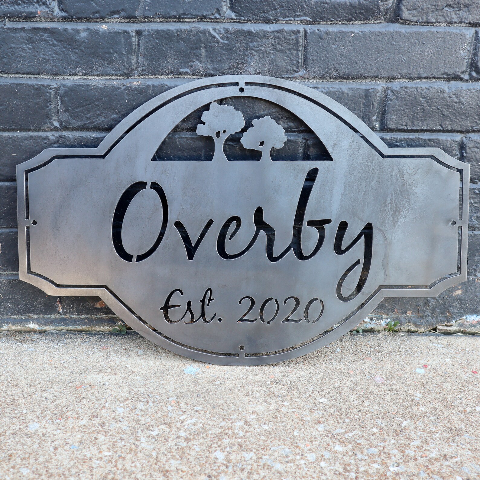 Personalize this sign with one line of text and the established date. The MIDDLE line of text can fit up to 10 characters, and the EST date can be changed to any year. Leave a Note to Seller at checkout with the text and year you would like.