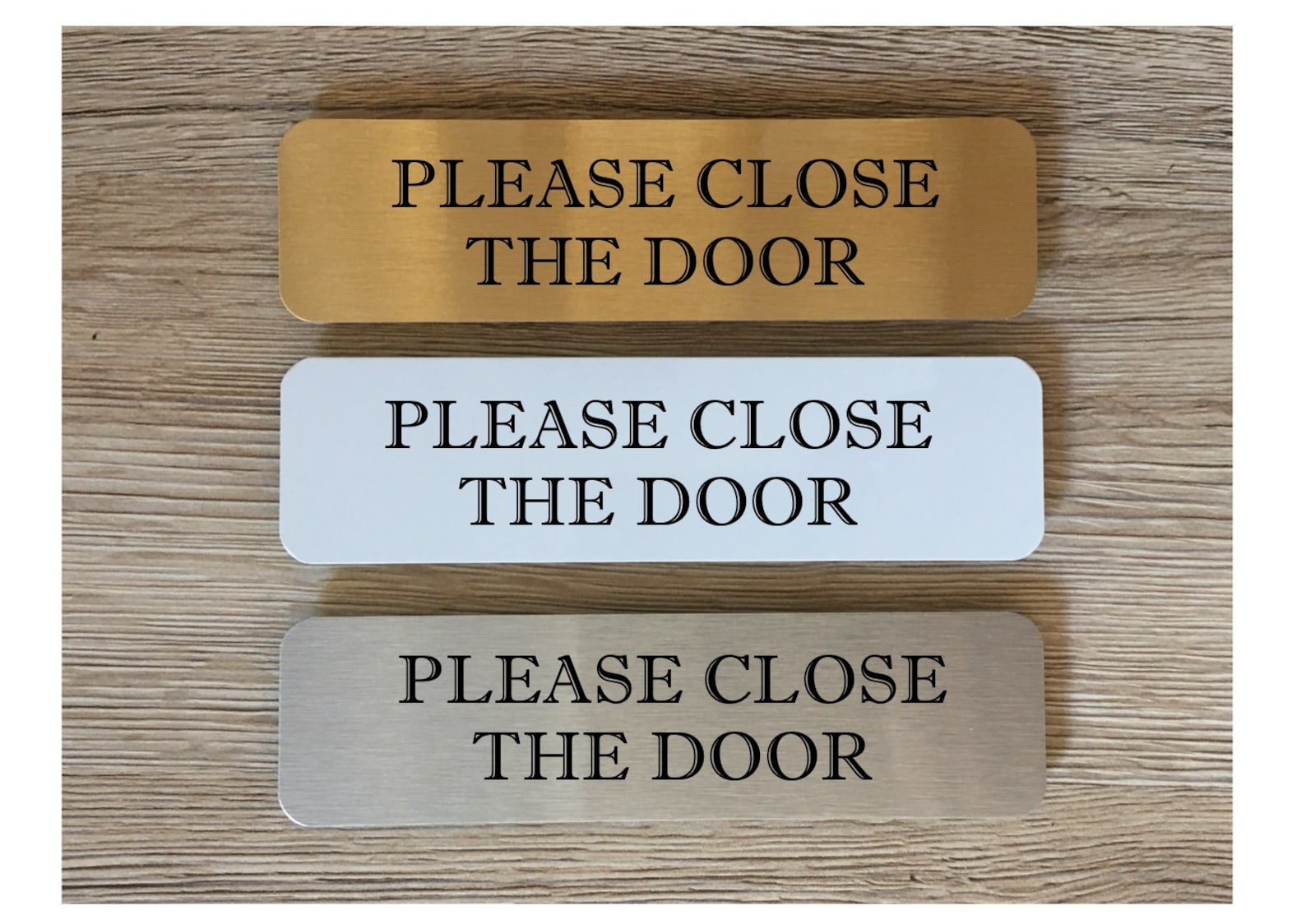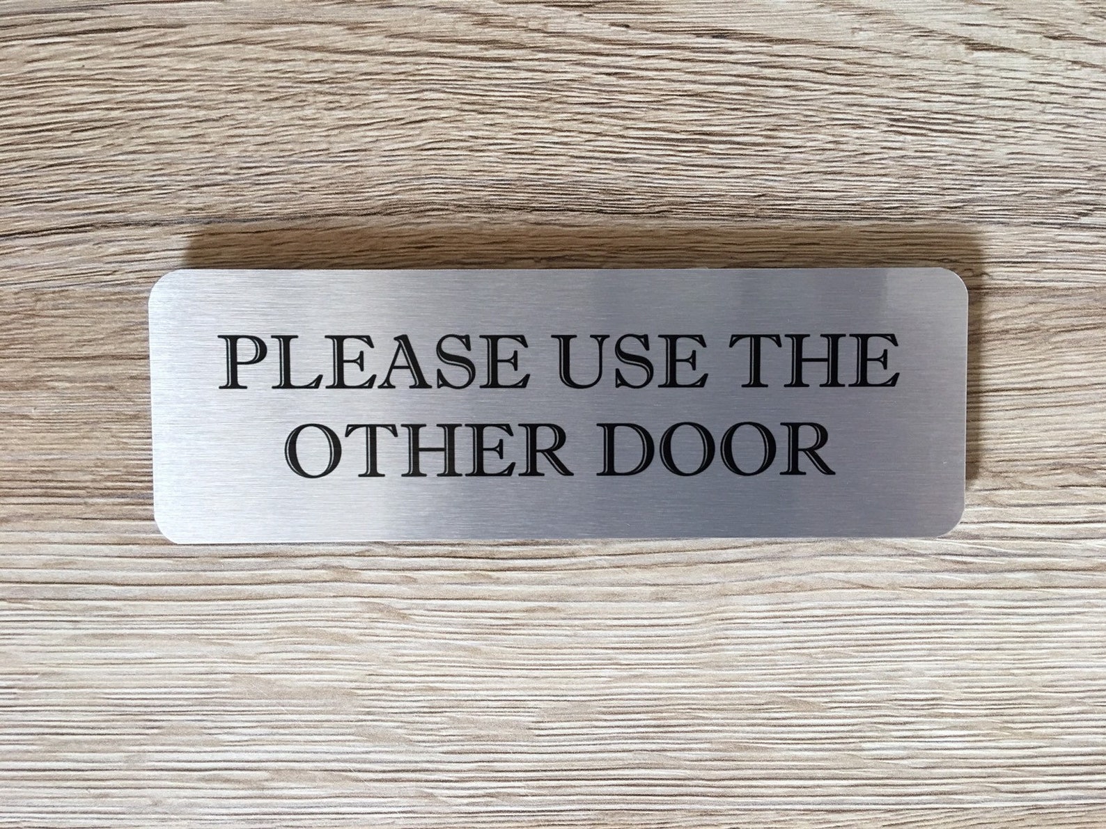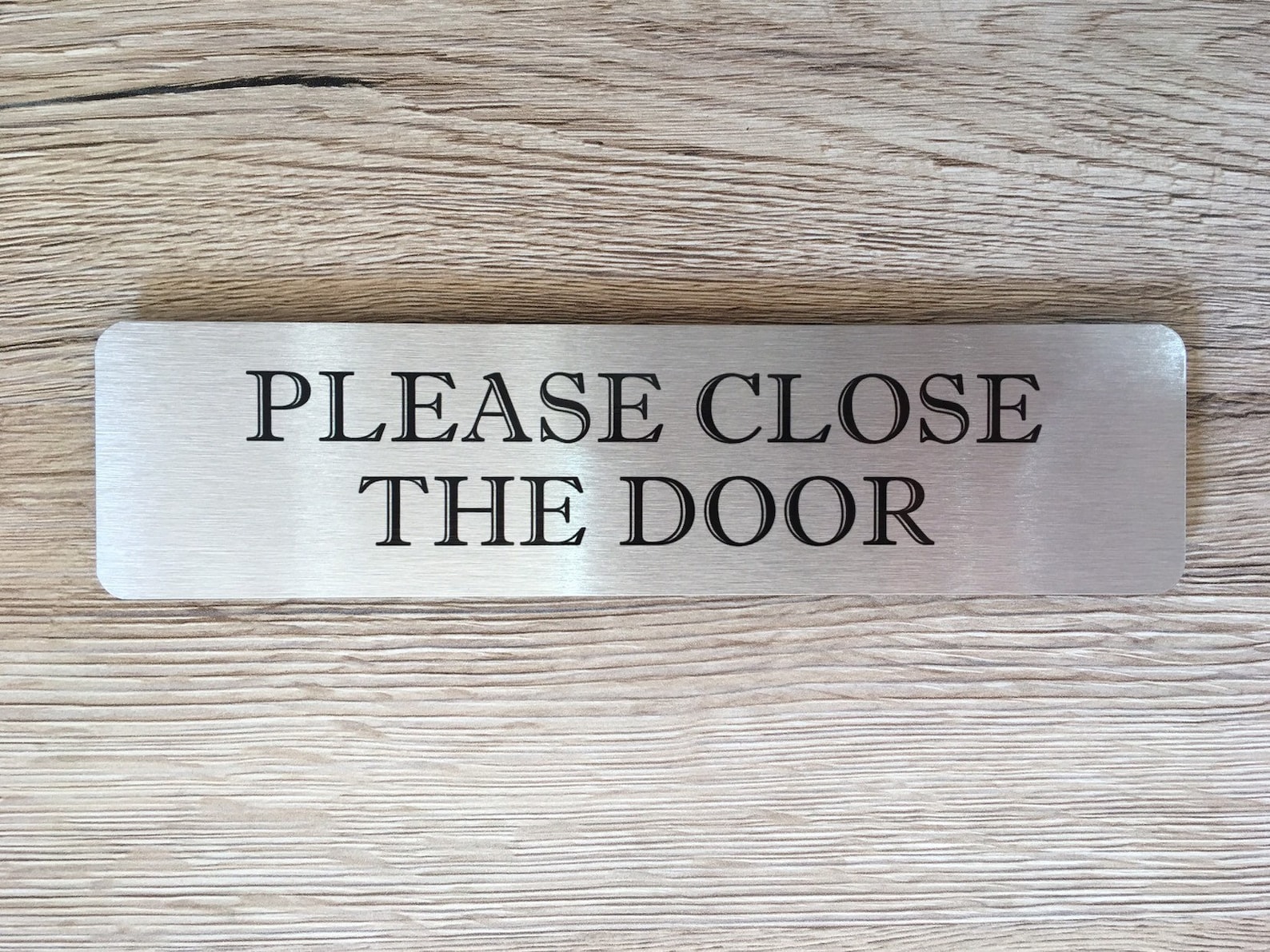 Our 9;Vital Signs9; range is designed to remove the tiny stresses in life. Make sure visitors knock loudly, remove their shoes and close the door. These simple messages are on a light brushed silver plaque in a choice of two sizes. Each one has a brushed silver back and a wipe clean surface. Attach with sticky pads for easy hassle-free mounting or for a flush finish use strong glue. No nails needed.