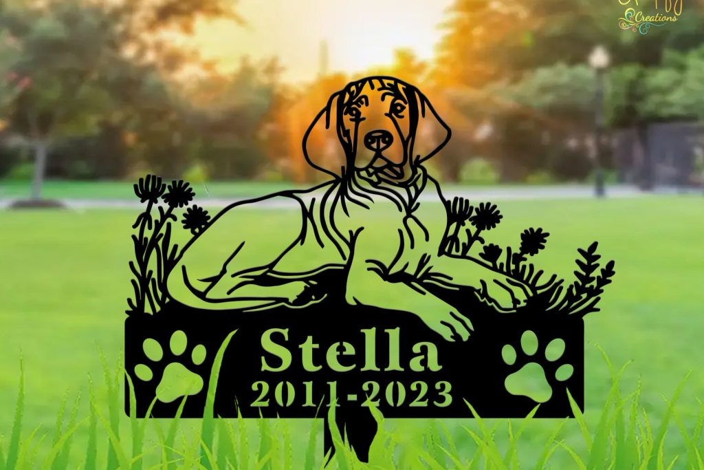 Custom garden items to commemorate your family9;s beloved dog. A memorial plaque is a great way to remember your dog. You can personalize the plaque with your dog9;s name, birthdate, and deathdate.