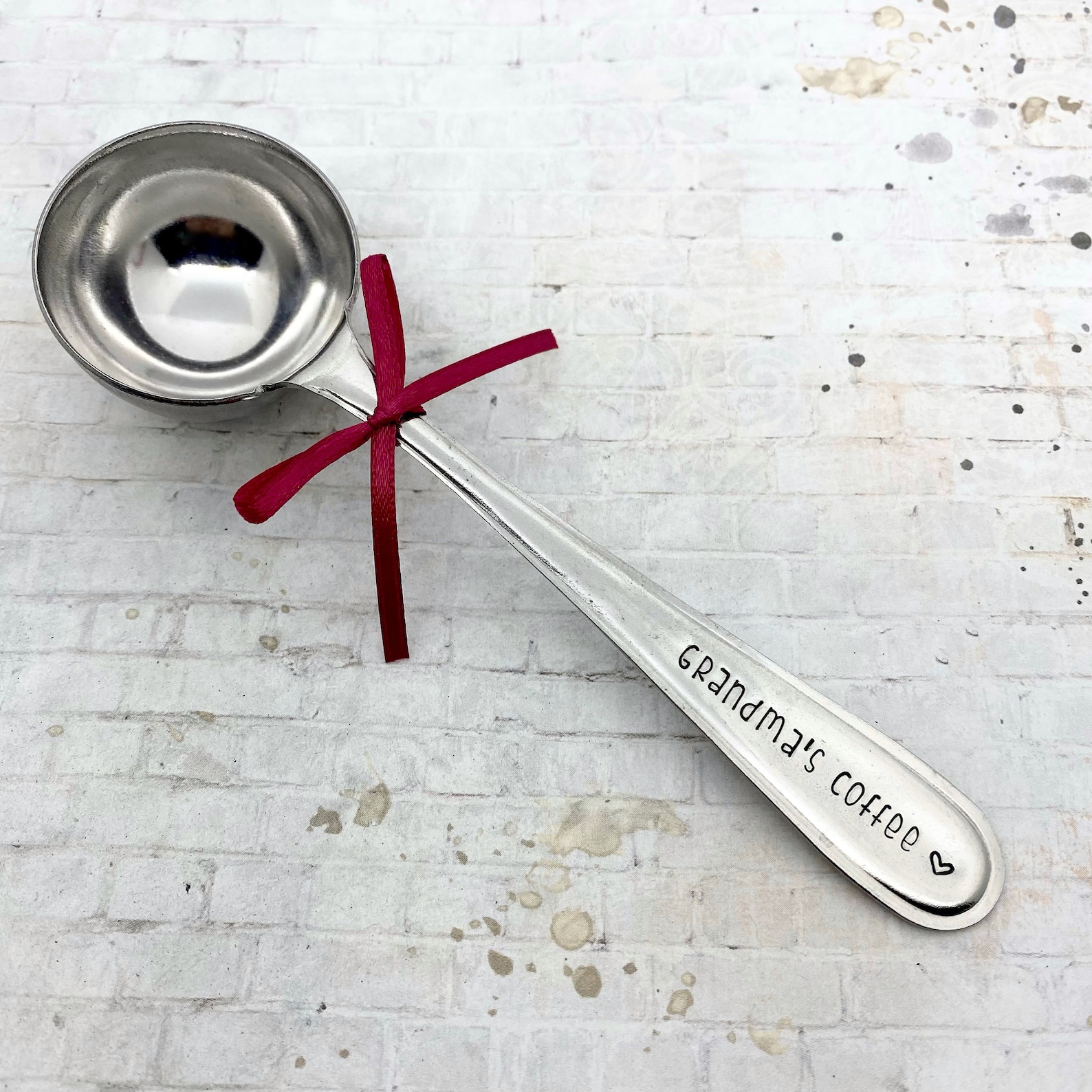Hand stamped saying on scoops handle