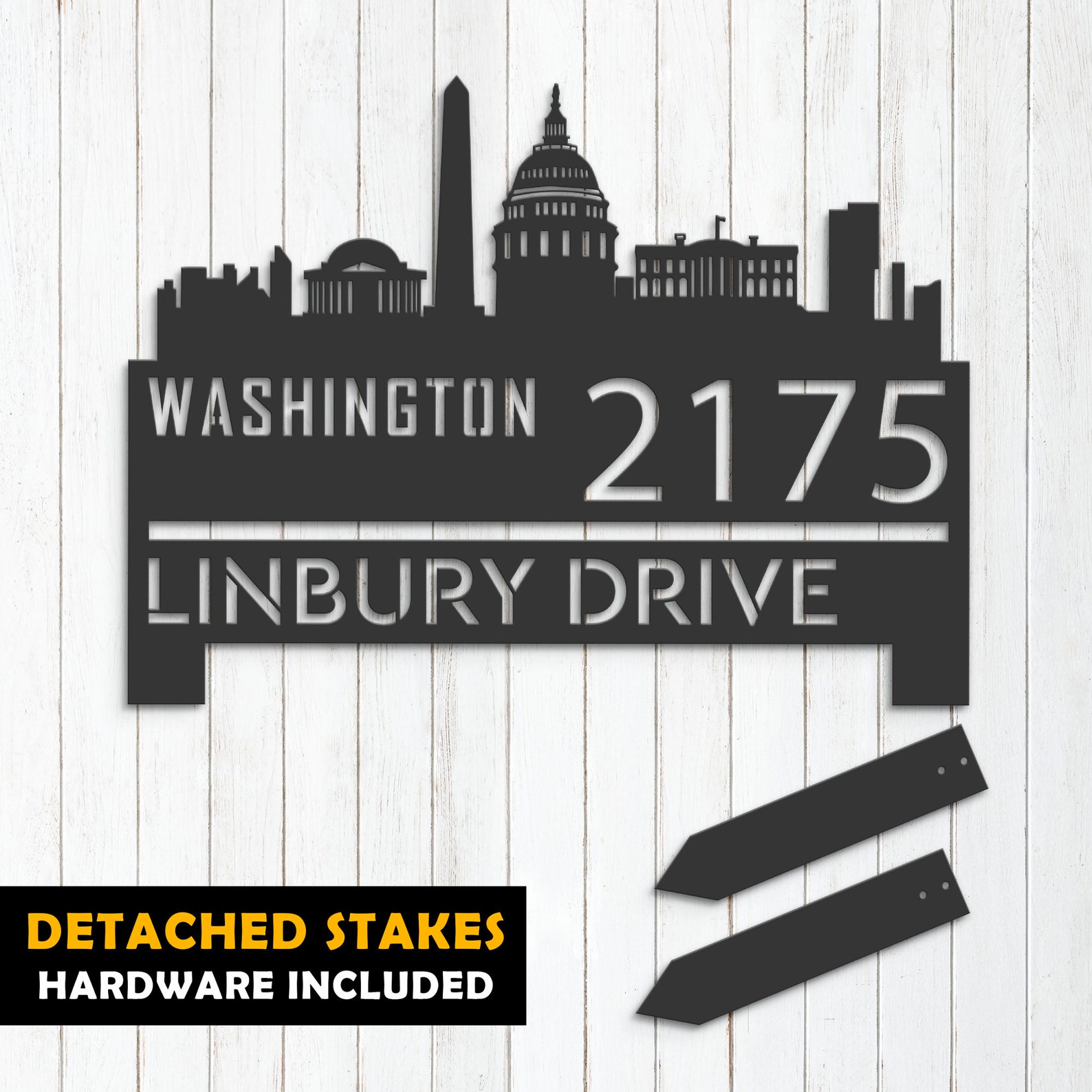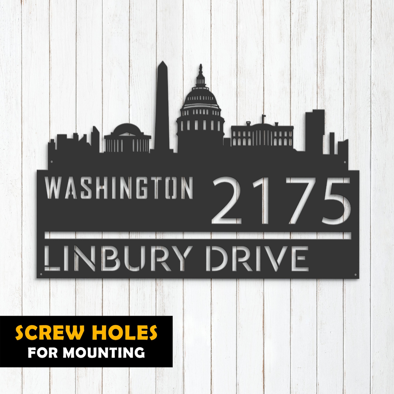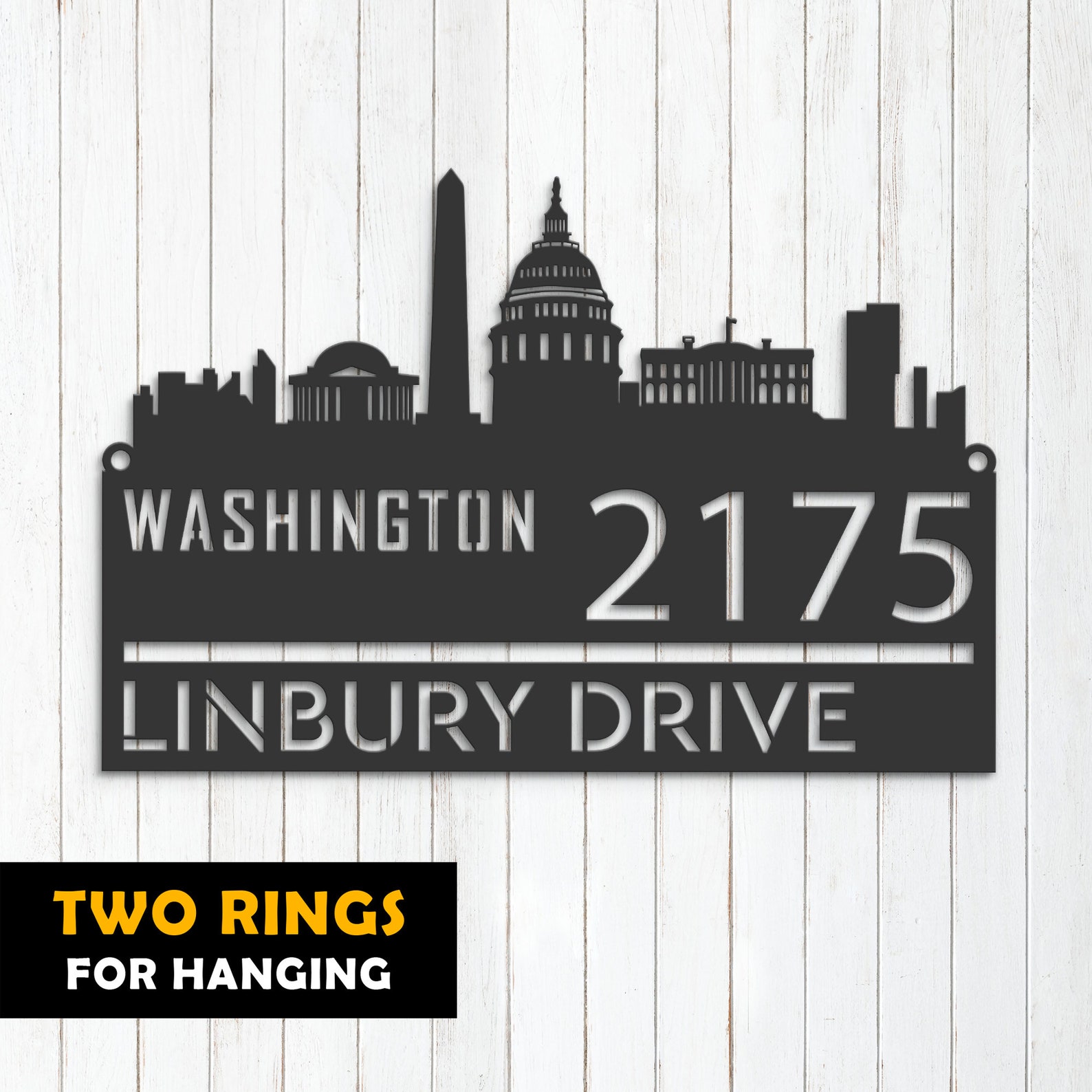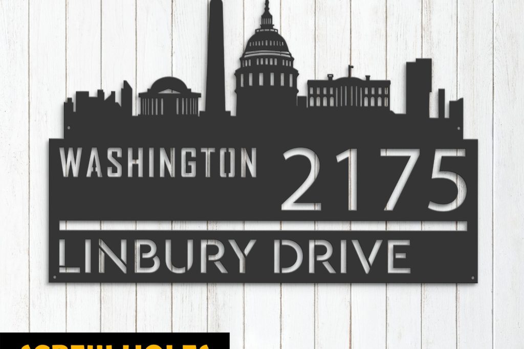 Be the first to review “Washington Skyline Address Sign – Personal Metal Decor”