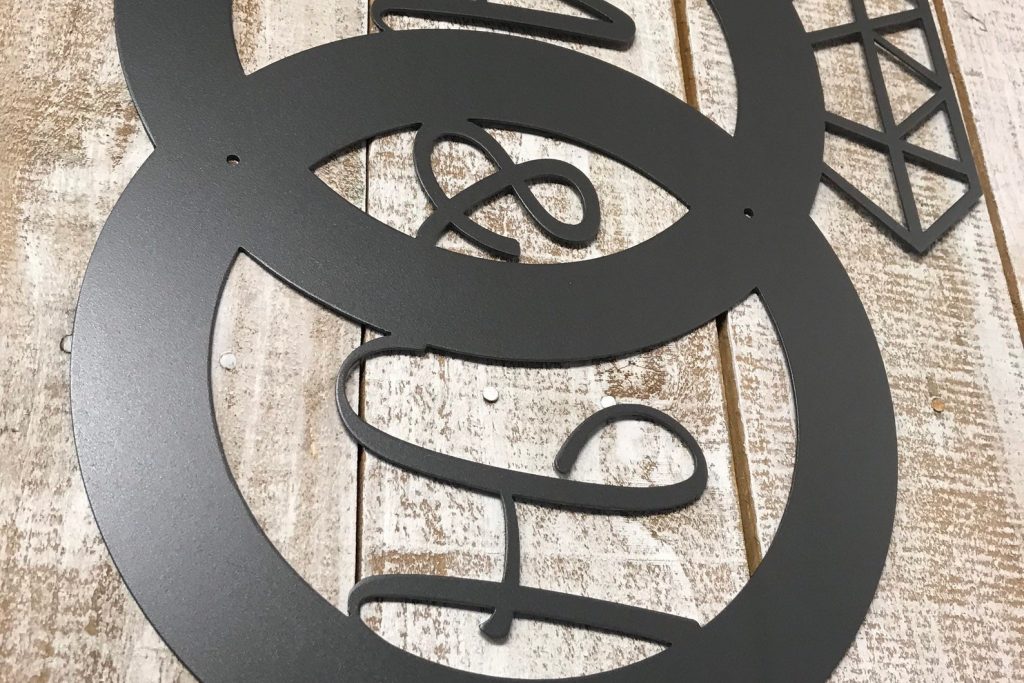 Example sign is powder coated in CHARCOAL
