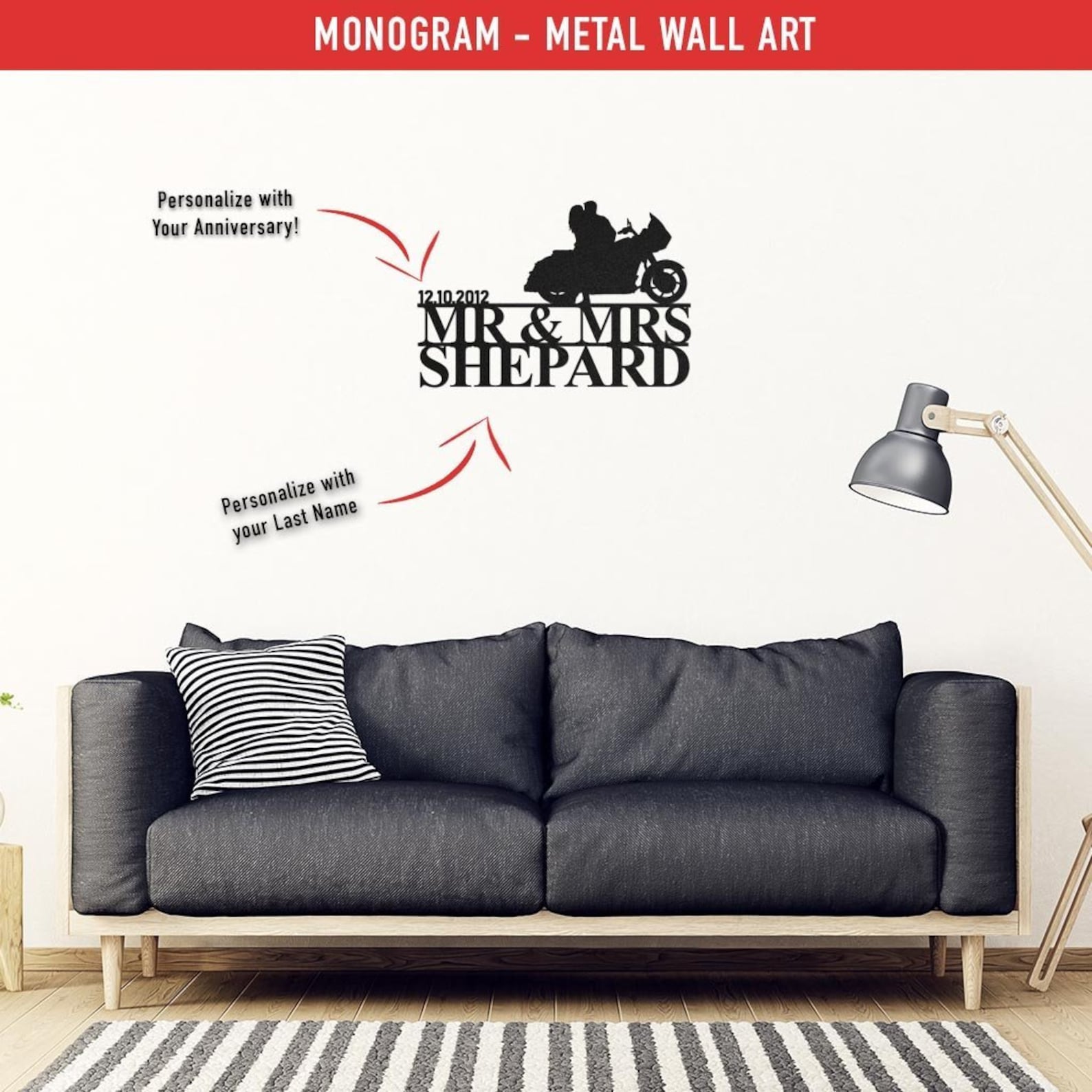 PERSONALIZED Wedding Date Sign – Married Husband Wife Biker Couple Metal Wall Art Wedding / Anniversary / Birthday Gift