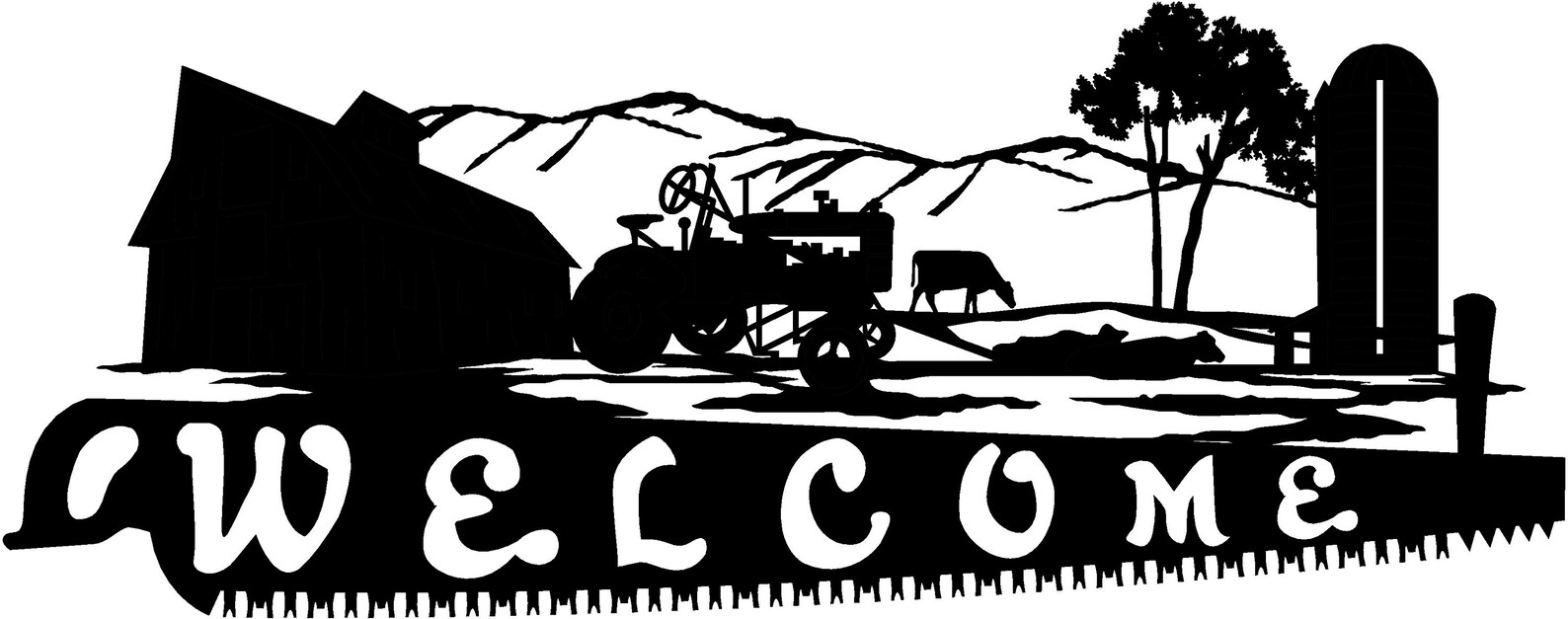 metal sign with farm scene welcome .Our finish is a baked on powder coat for a very long lasting durable finish. This will be made from heavy 14ga steel.