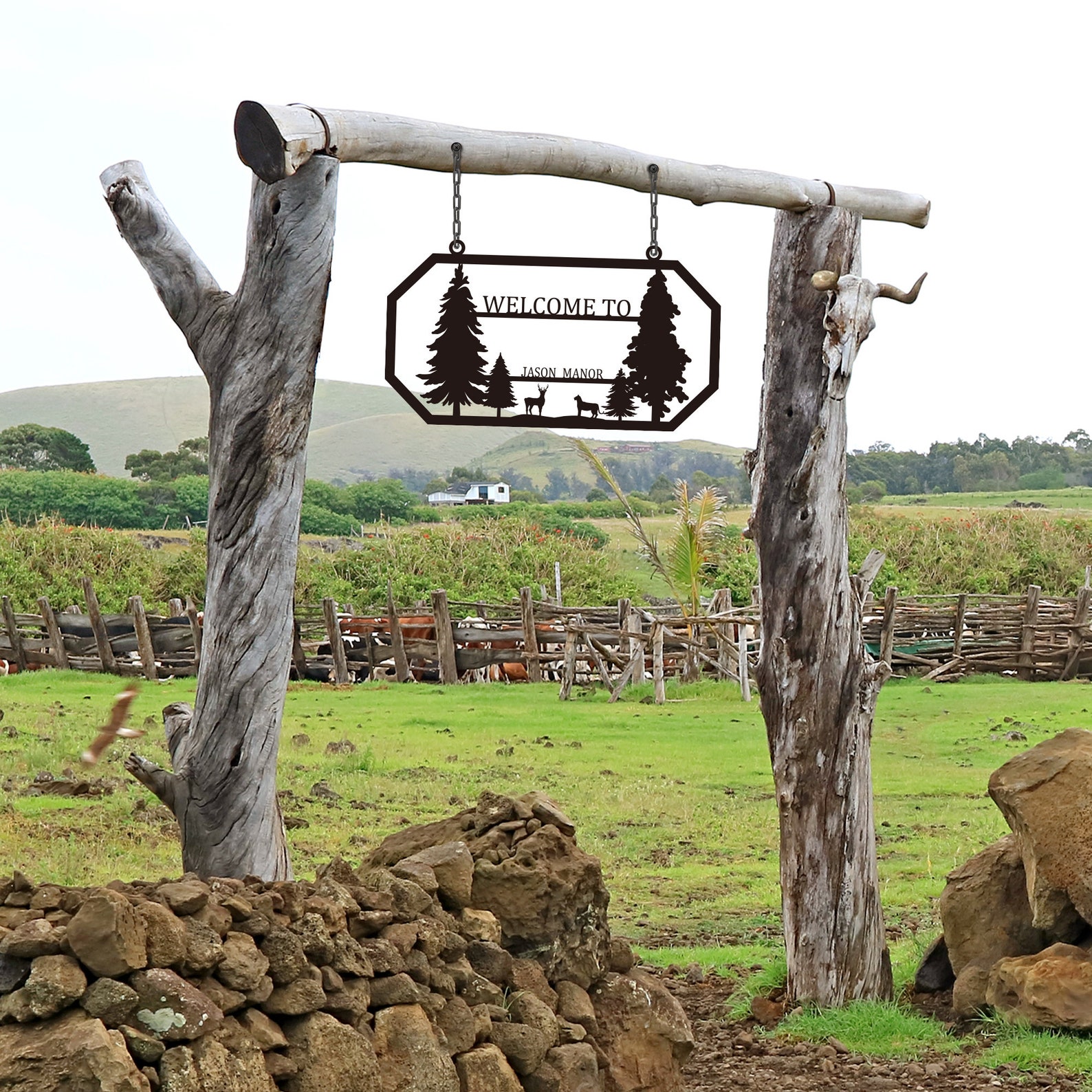 Be the first to review “Welcome Manor Metal Sign for Farmhouse Family Decor”