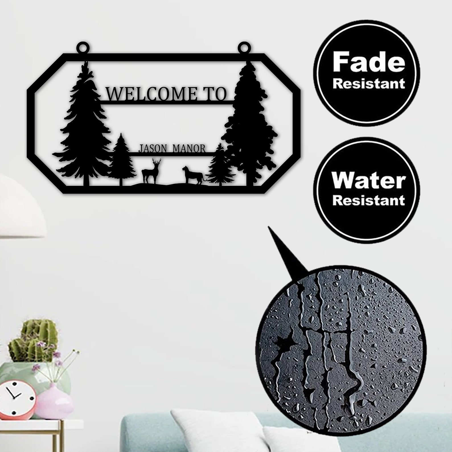 Mounting Holes: All our metal wall decorations are designed to hang on interior or exterior walls. All products come with pre-drilled mounting holes for easy mounting screws as a gift.
