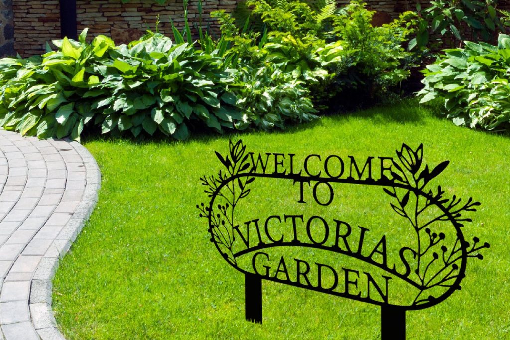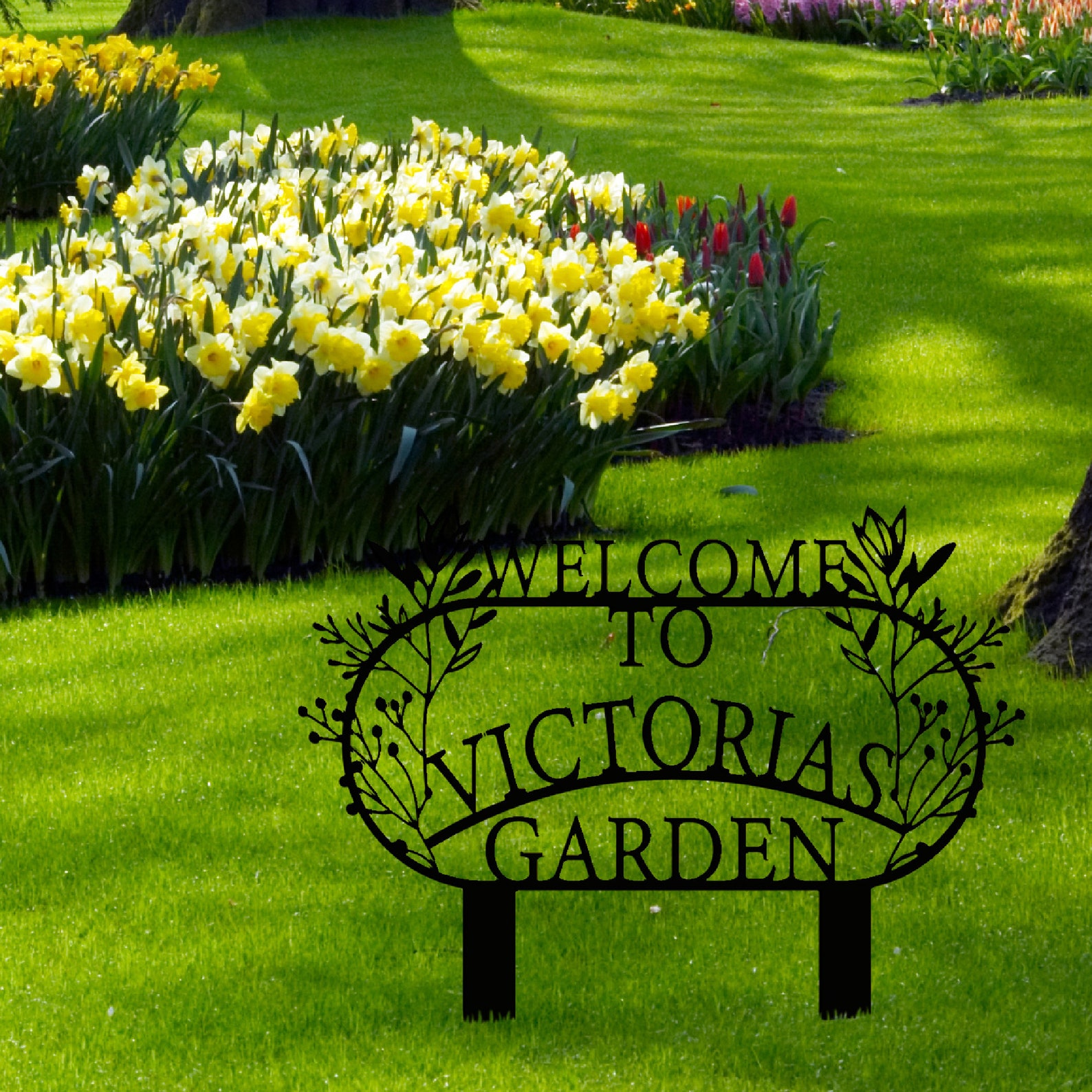 Custom Garden Metal Welcome Sign with Stakes, Personalized Welcome Sign, Unique Home Garden Decor, Large Outdoor Decor, Metal Welcome Sign