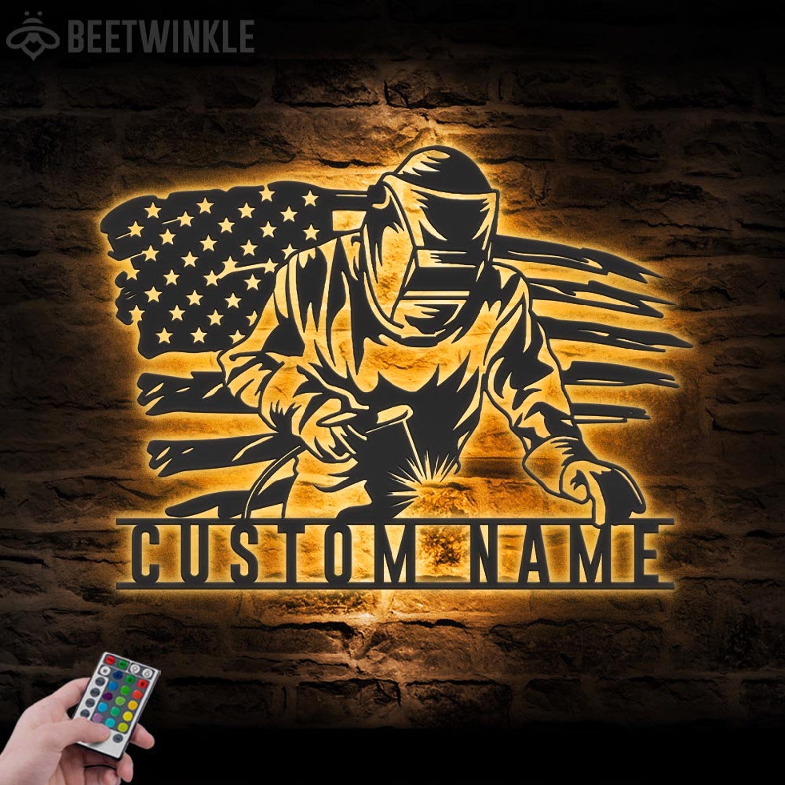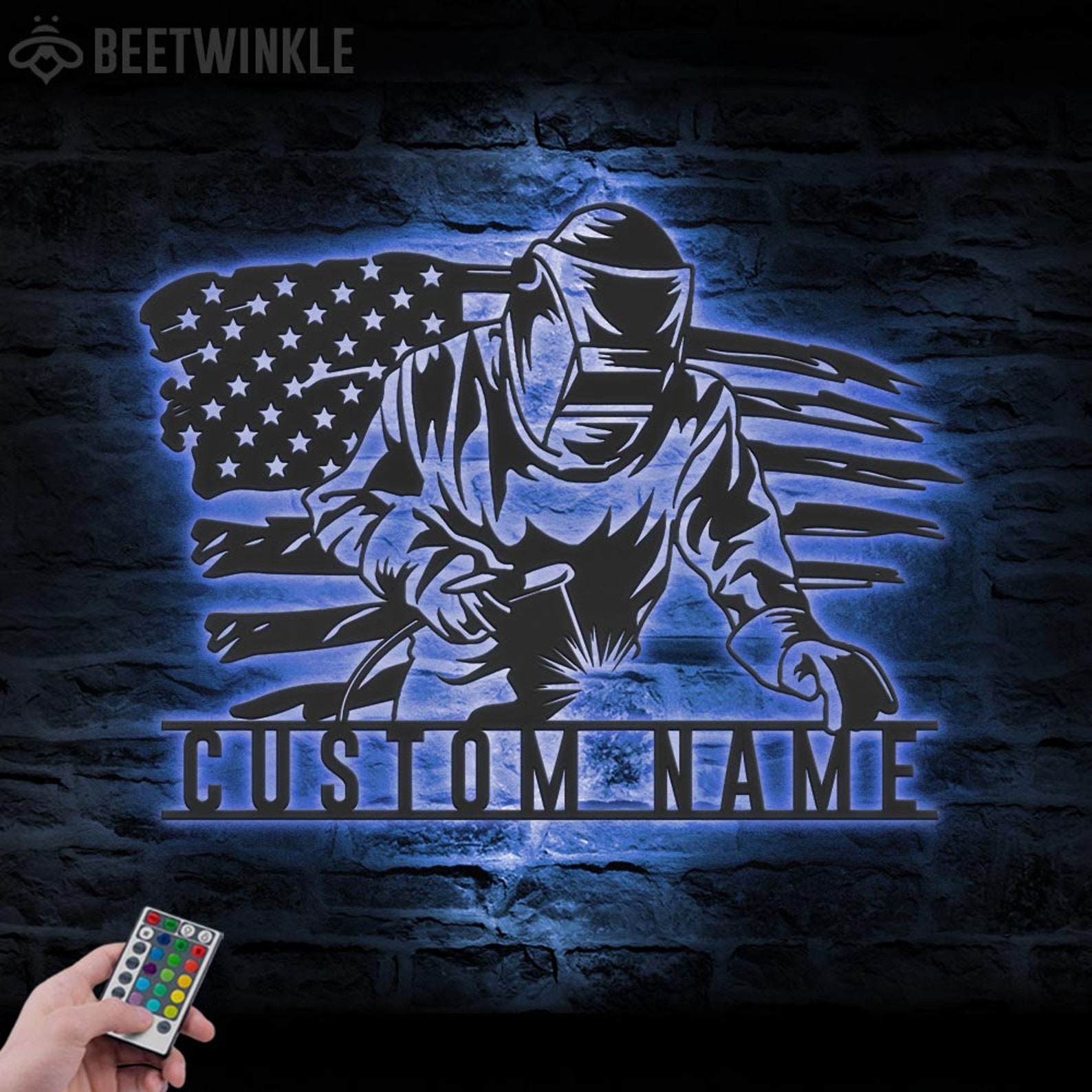 Be the first to review “Welding US Flag Sign, LED Light, Ironworker Gift”