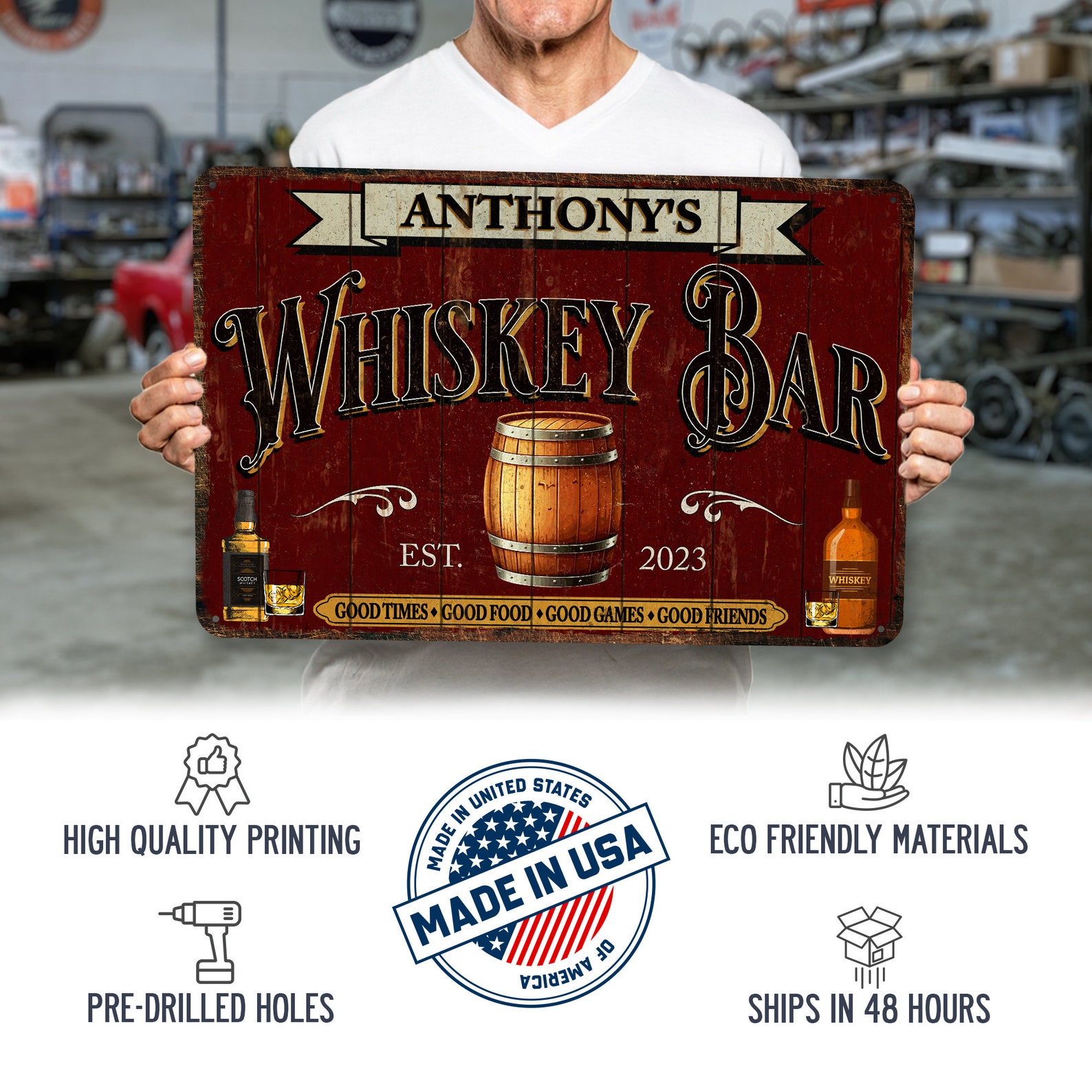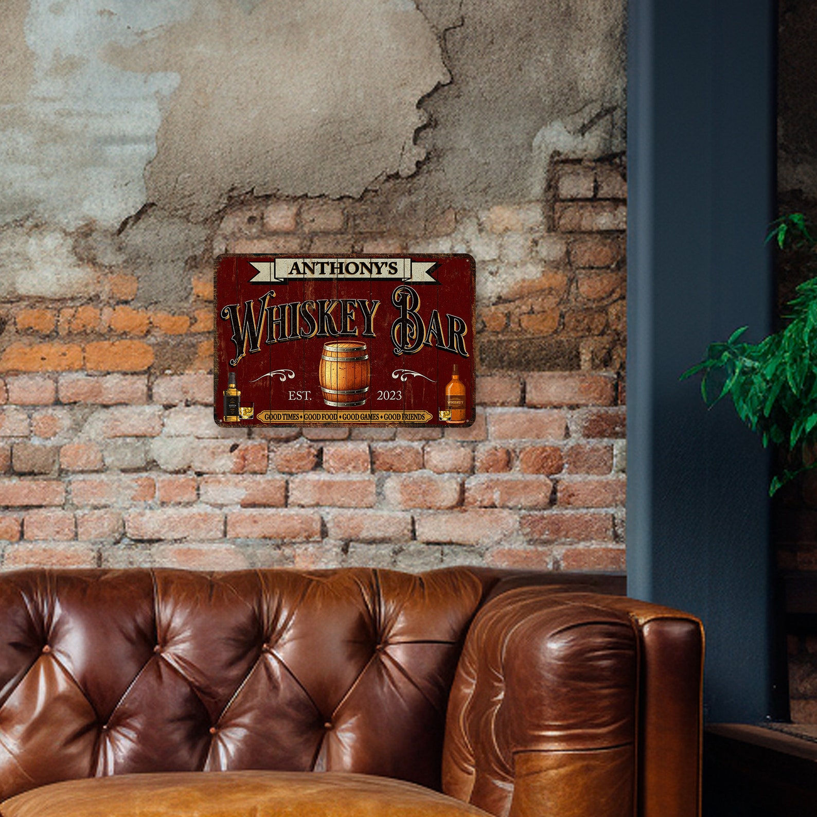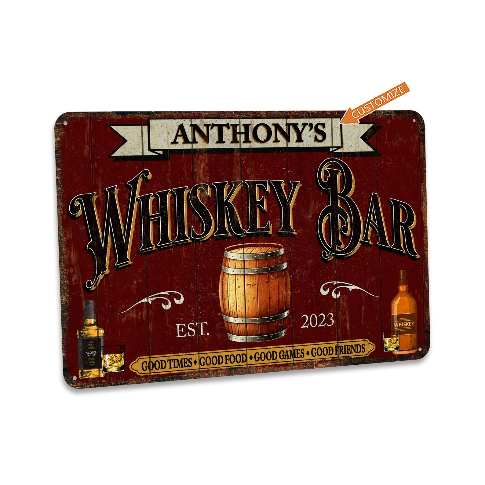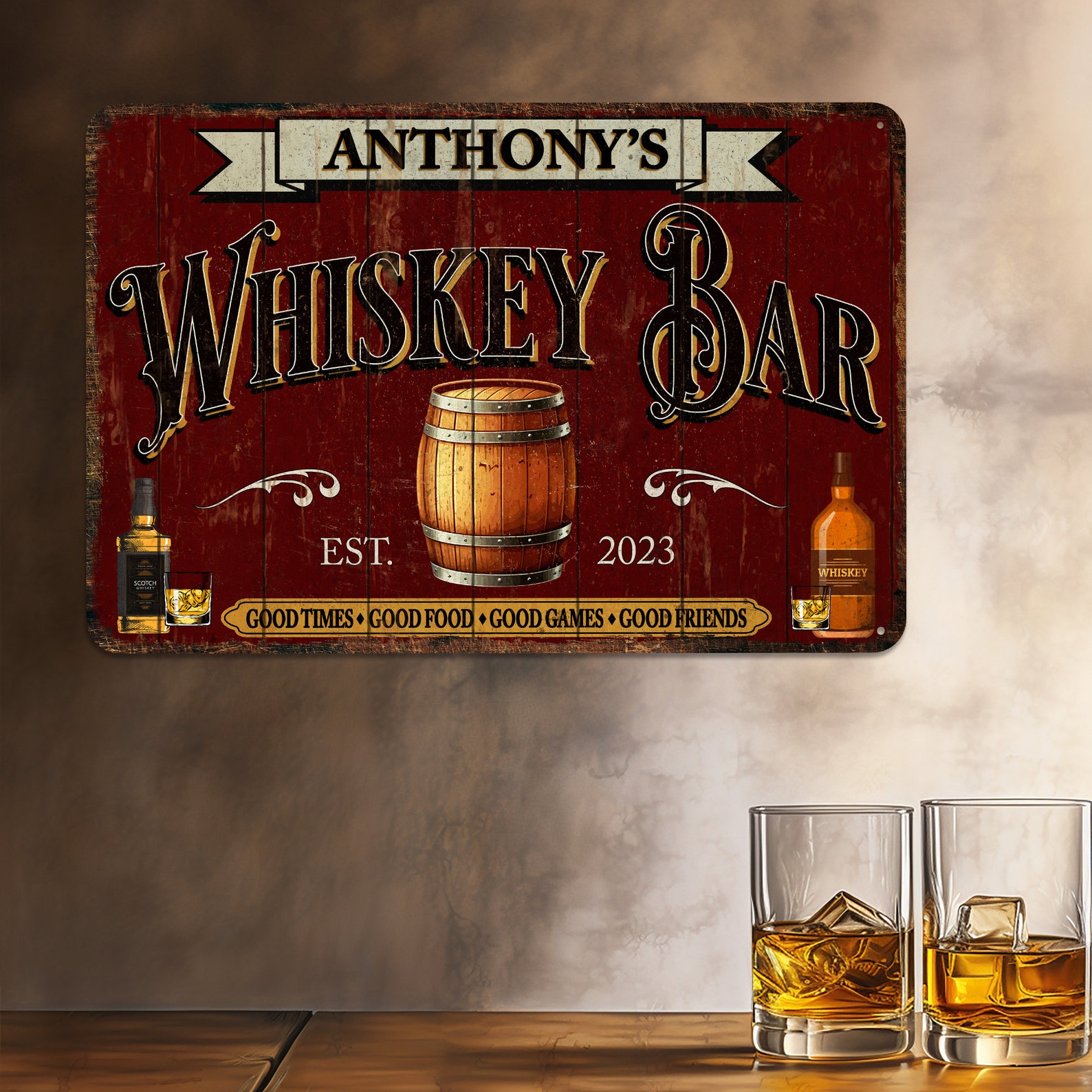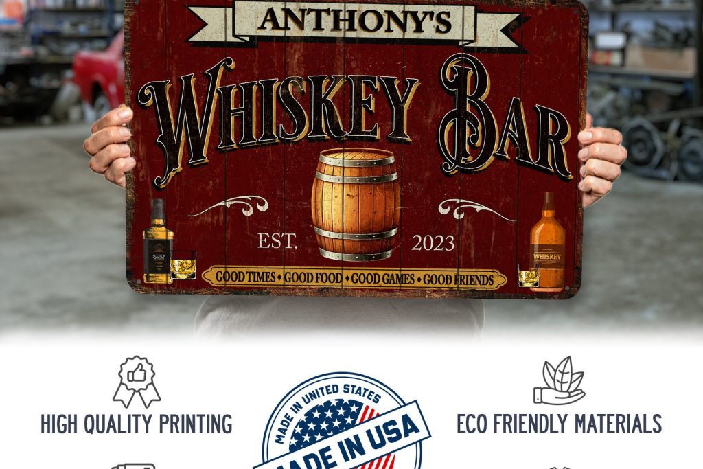 Personalized Whiskey Gift Whiskey Sign Whiskey Bar Sign Rustic Whiskey Decor Custom Bar Sign Man Cave Decor Garage Wall Art 108122002195