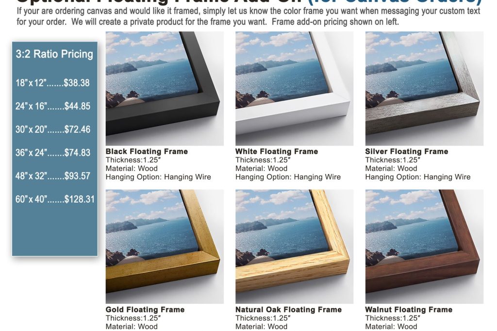 We will install a sawtooth hanger on the back of your canvas or leave it off if requested.