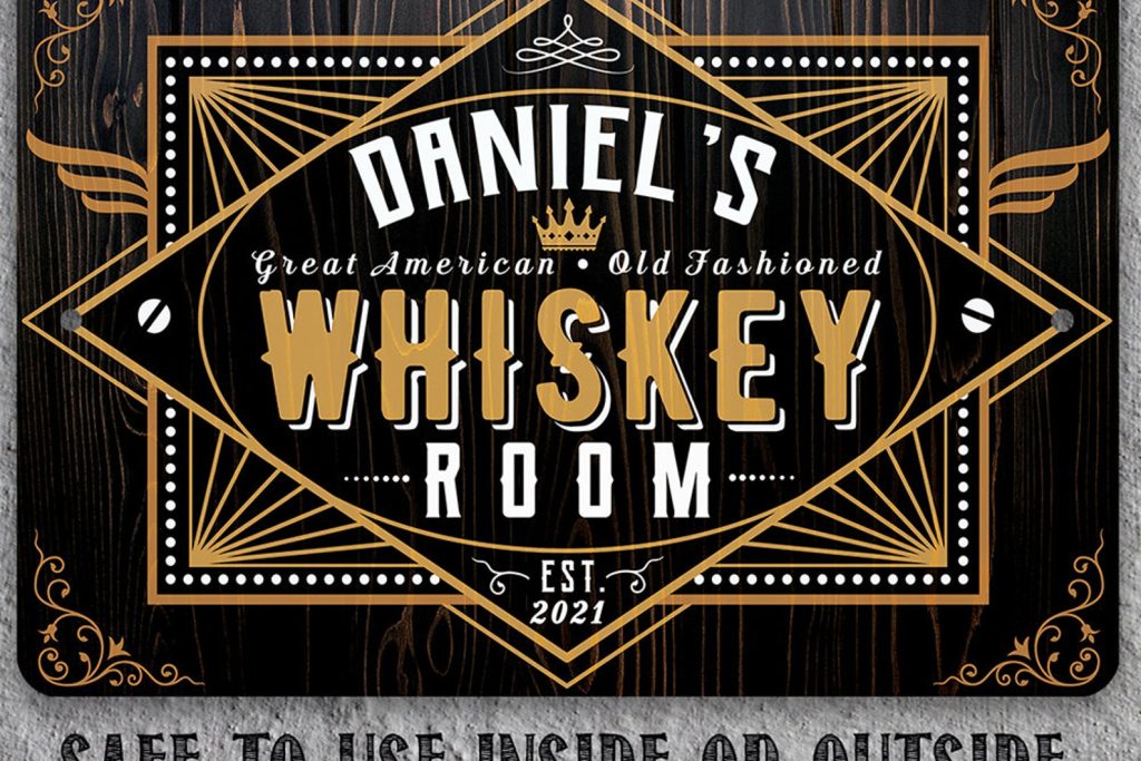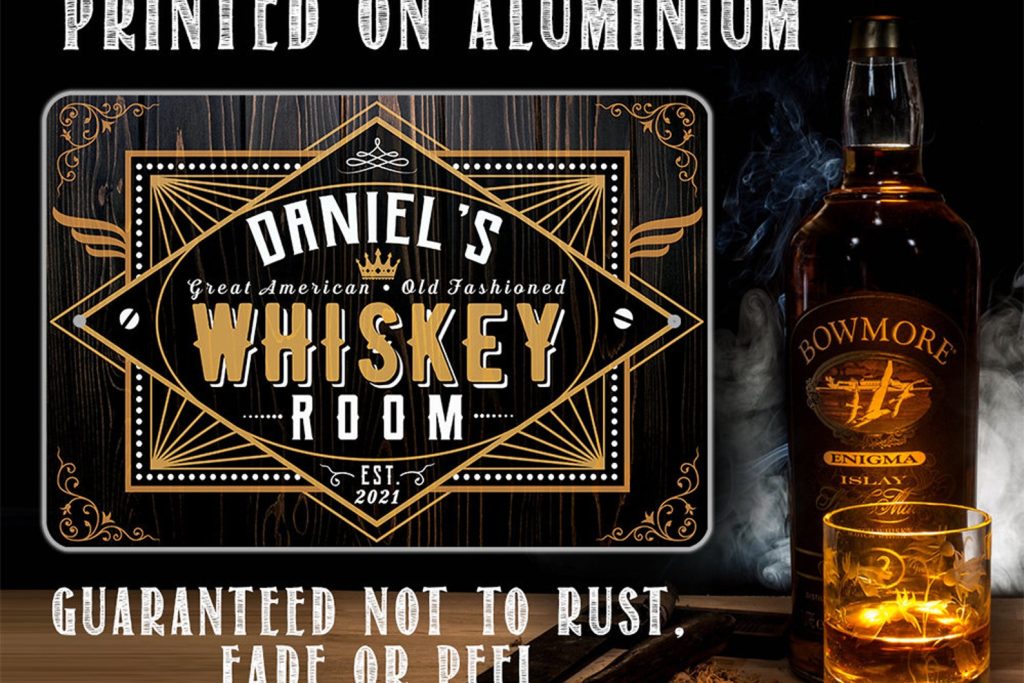 Tin – Personalized Whiskey Room Metal Sign – 8" x 12" or 12" x 18" Use Indoor/Outdoor – Bar, Pub, and Mancave Decor