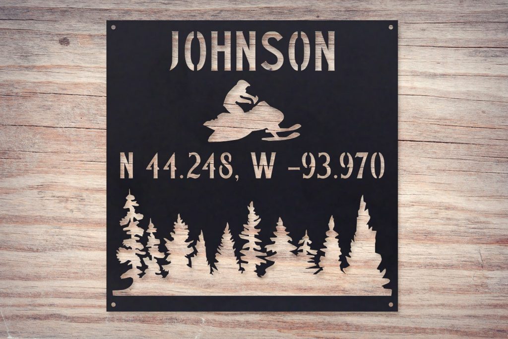 Winter Coordinates Sign – Custom Metal Snowmobile Decor