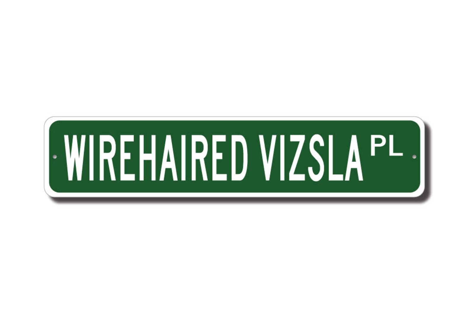 Wirehaired Vizsla lovers check out this awesome street sign! This will make the perfect piece for any Wirehaired Vizsla lover or Wirehaired Vizsla cave. Made of premium aluminum it will stand the test of time. This sign will look great in any room, garage, barn or office! Get this sign for your favorite friend that loves a Wirehaired Vizsla ! All of our street signs are made of premium materials. The sign itself is made of aluminum and will never rust providing years of enjoyment indoors and outdoors. No Cheap plastic!! You can use any street designation you would like on your signs. AVE, RD, ST, TRAIL, CT, BLVD…. CHOSE WHATEVER! Just let us know when you checkout.