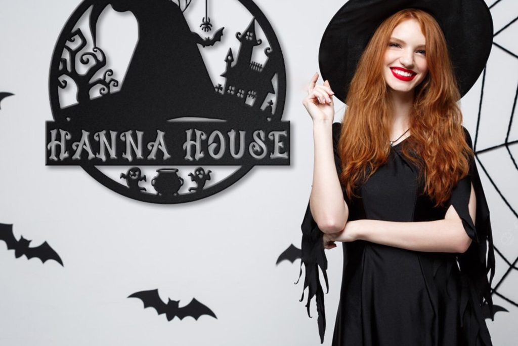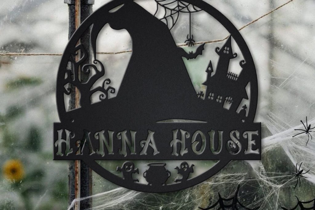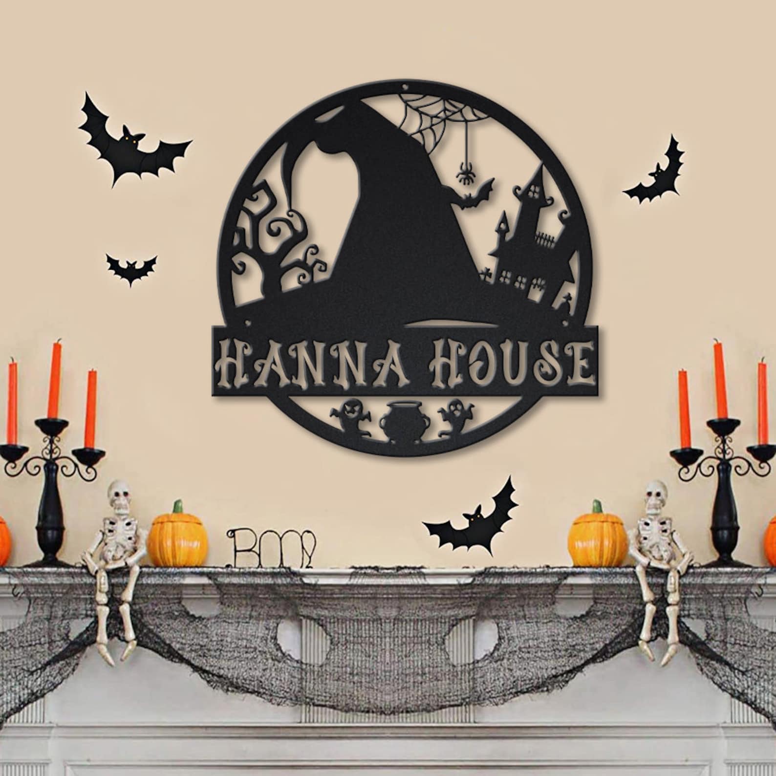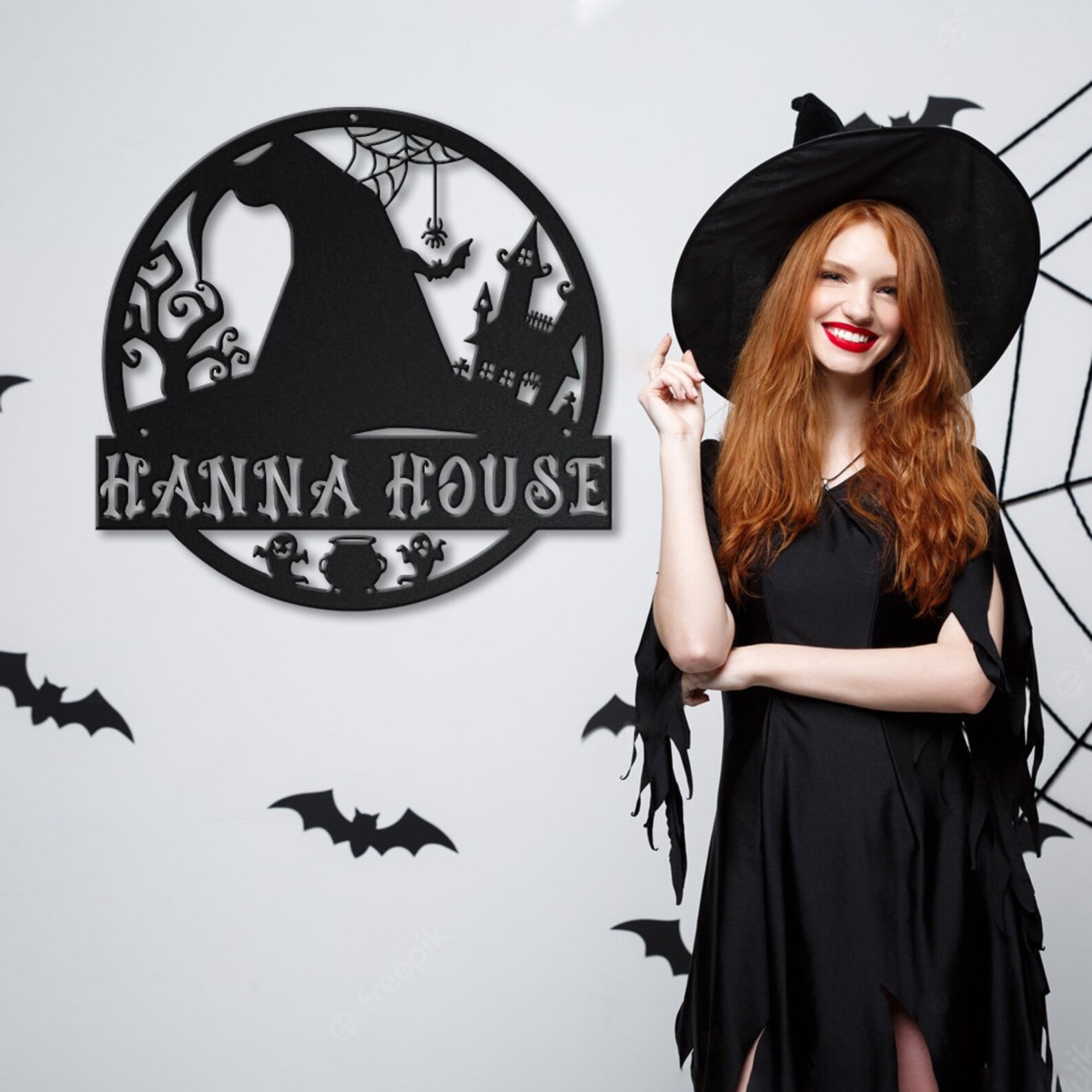 Be the first to review “Witch Hat Halloween Metal Sign – Haunted Welcome Decor”