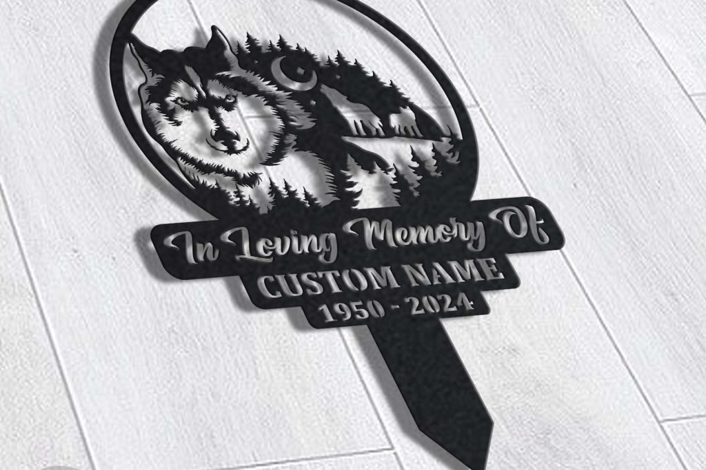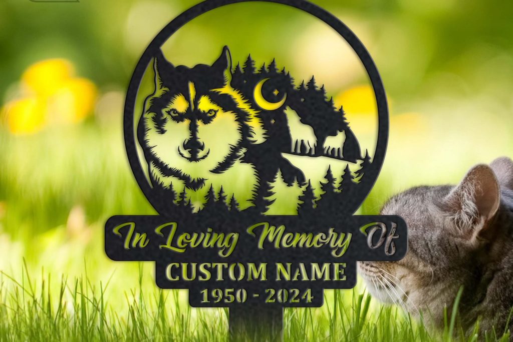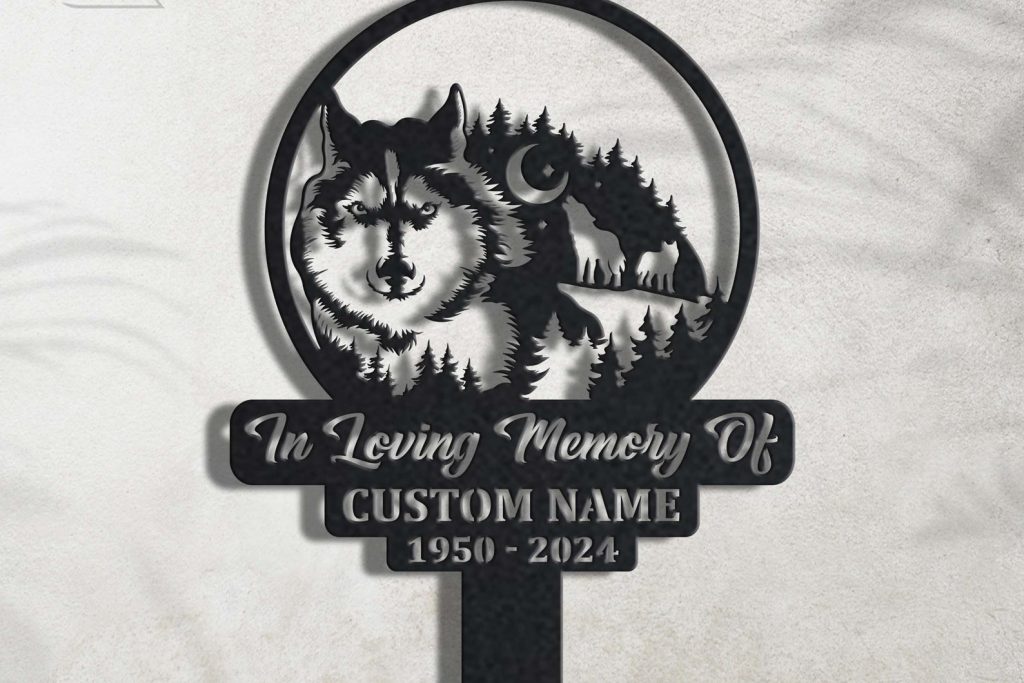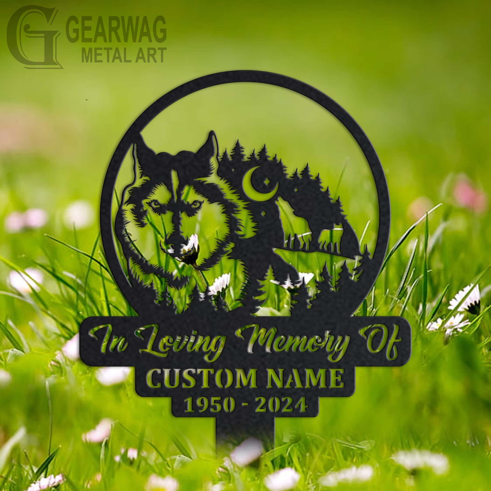 Wolf Memorial Stake – Custom Metal Sympathy Decor