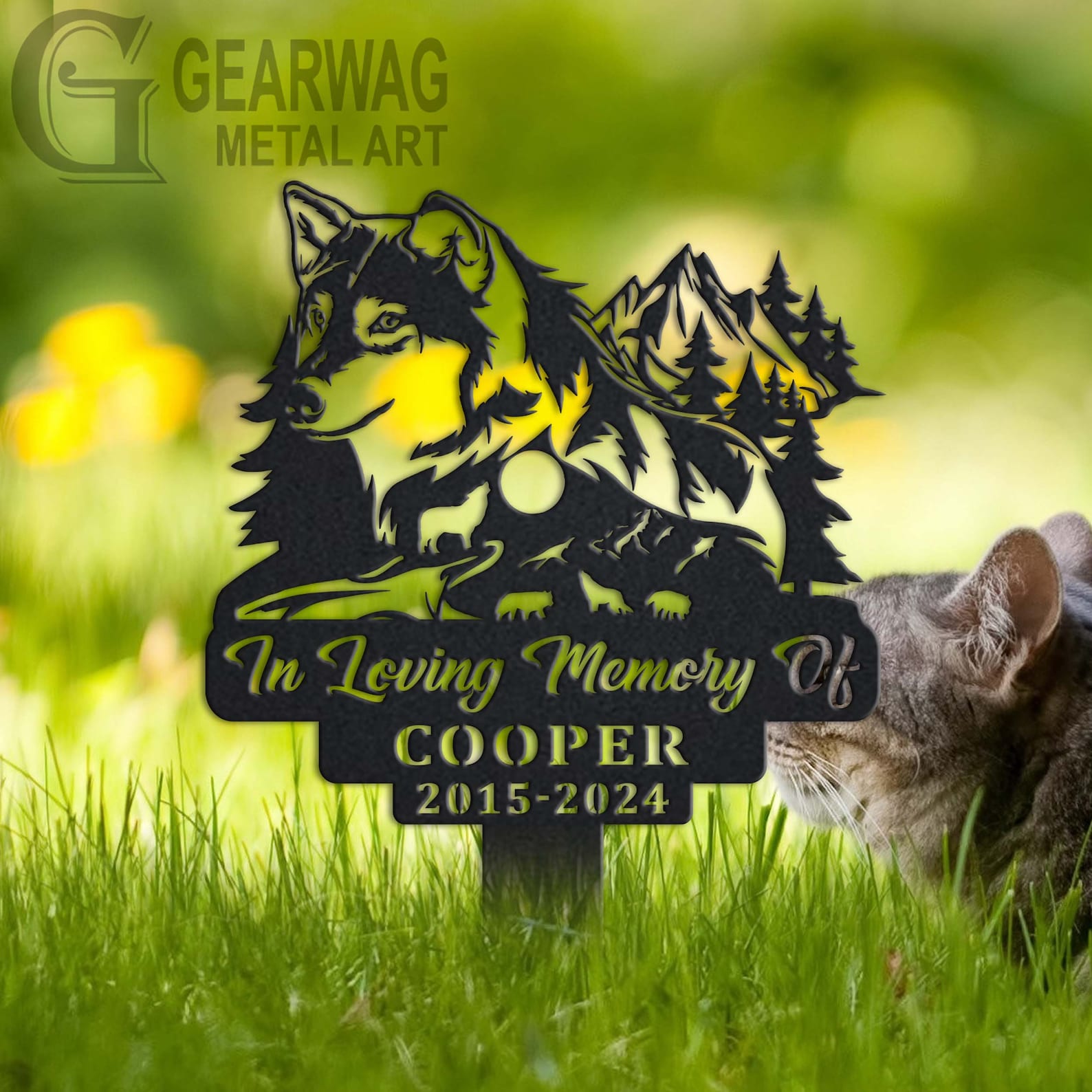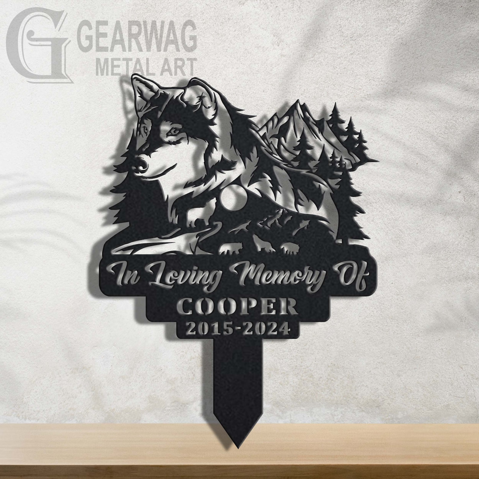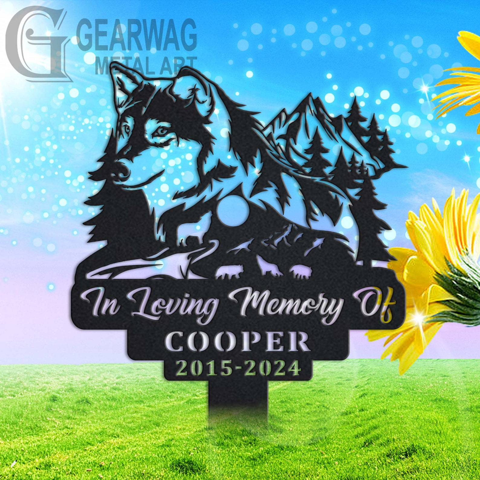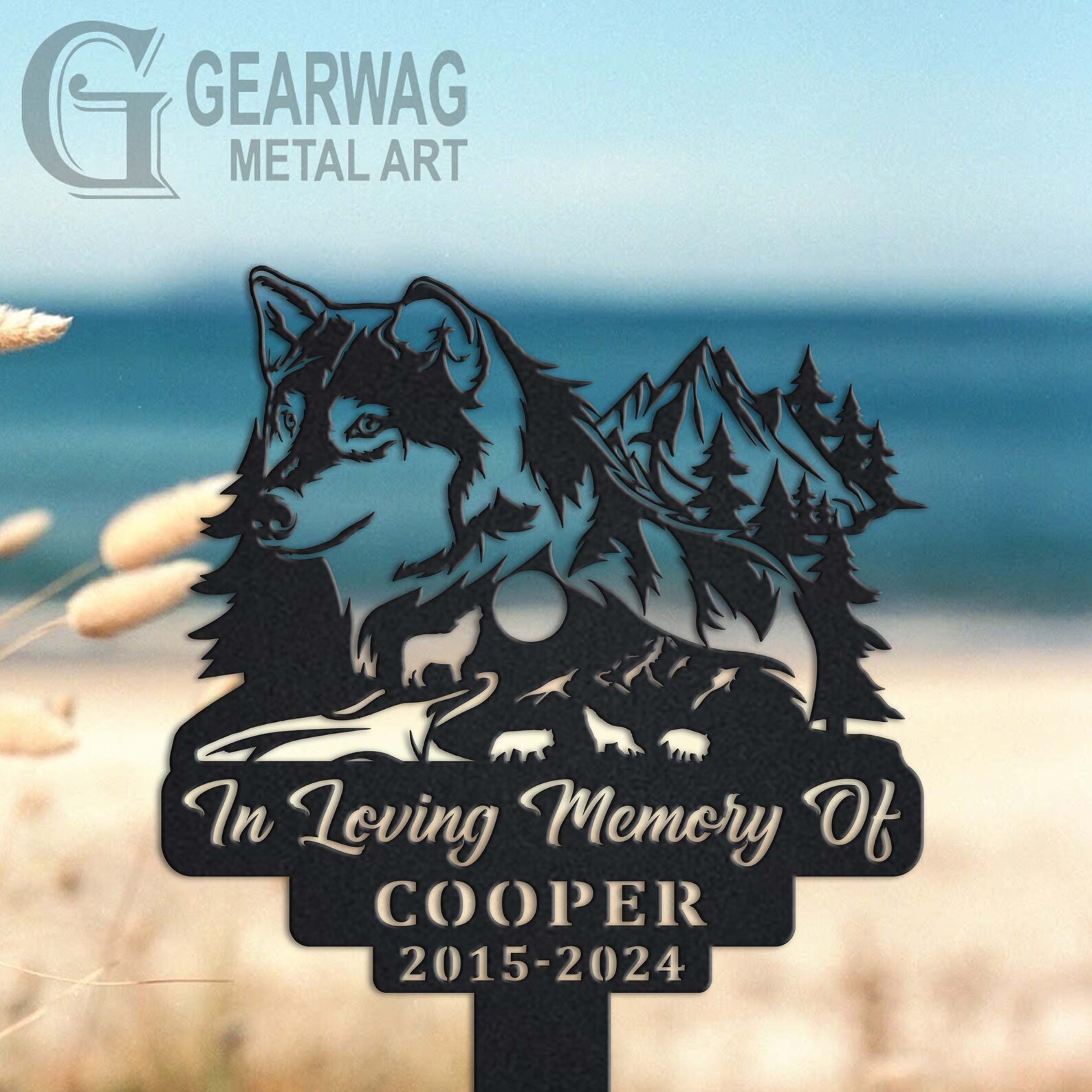 Wolf Memorial Stake – Custom Metal Sympathy Sign