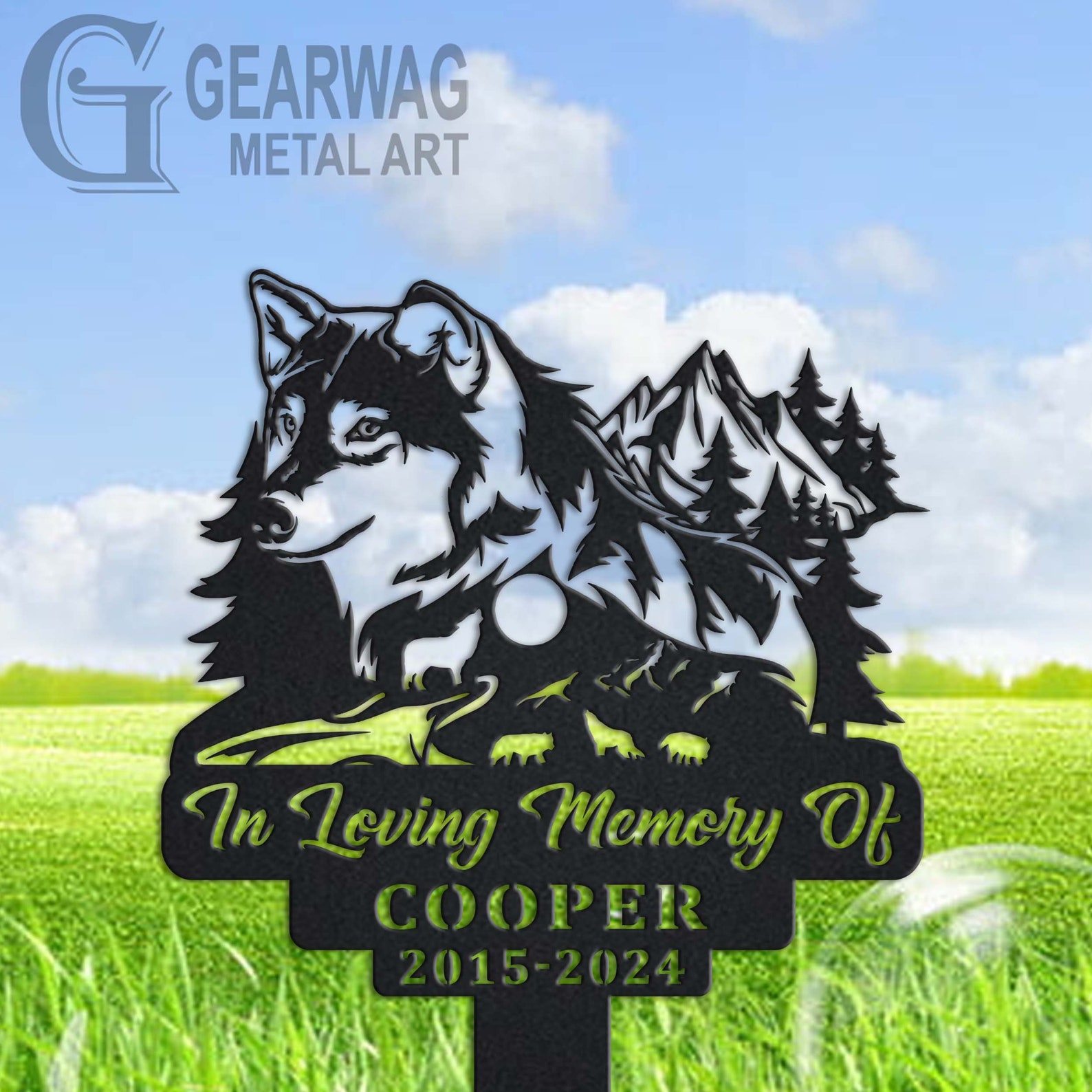 Be the first to review “Wolf Memorial Stake – Custom Metal Sympathy Sign”