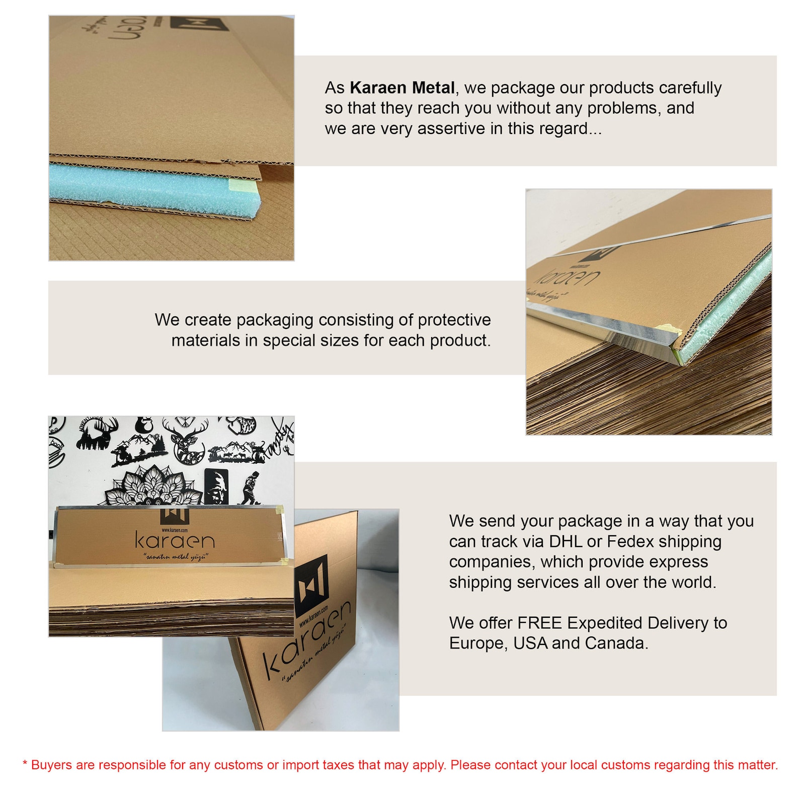 Our products are packed in a special box so that they can reach you without any problems. We prefer to work with the best EXPRESS cargo companies in the world to deliver your orders to you as soon as possible. If there is any problem with your delivery, please contact us to resolve it.