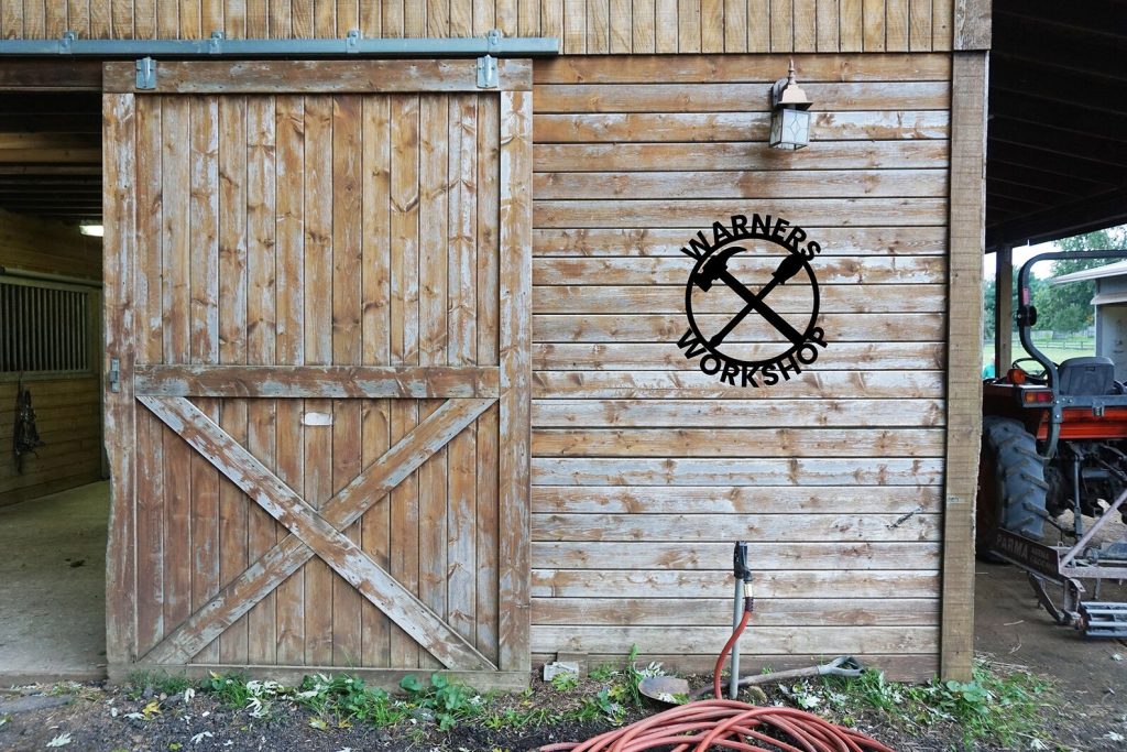 Workshop Sign – Round Metal Hammer Decor, Dad隆炉s Gift